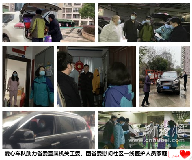 正值八”国际妇女节当天,省委直属机关工委、团省委携100份爱心大礼包(含100份粮油生活包和100份水果)慰问社区一线医护人员家庭。下午两点半,接到电话,爱心车队紧急出动,半小时内集结完毕,冒着大雨快速搬运抢运爱心大礼包。在省委直属机关工委常务副书记郭俊萍、团省委书记张桂华的带领下,及时把爱心大礼包分送到东湖社区74户一线医护人员手中,感谢他们在关键时刻挺身而出、无私奉献。