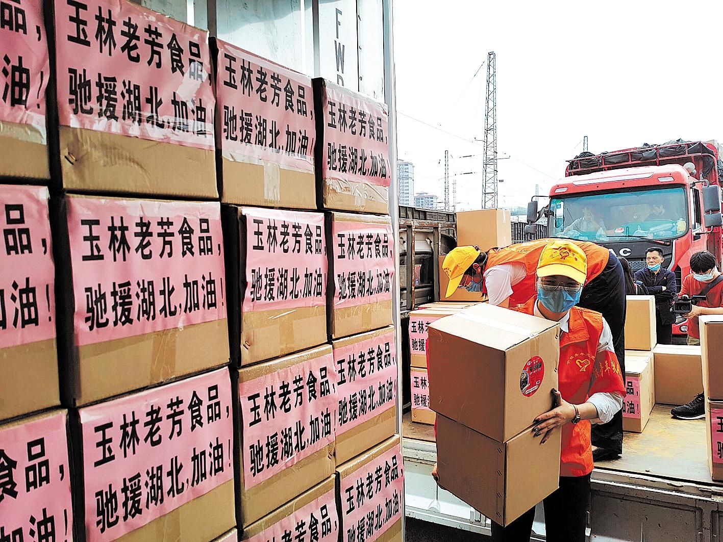 广西援鄂物资正在装车。 (图片由广西壮族自治区商务厅提供)