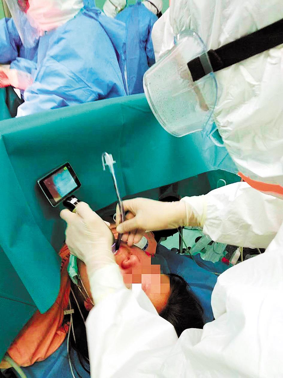 麻醉团队为危重症患者气管插管。 (武汉市中心医院供图)