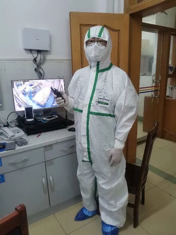穿上防护服,手拿对讲机,此刻的许承斌(中)就是一个“超级战士”。