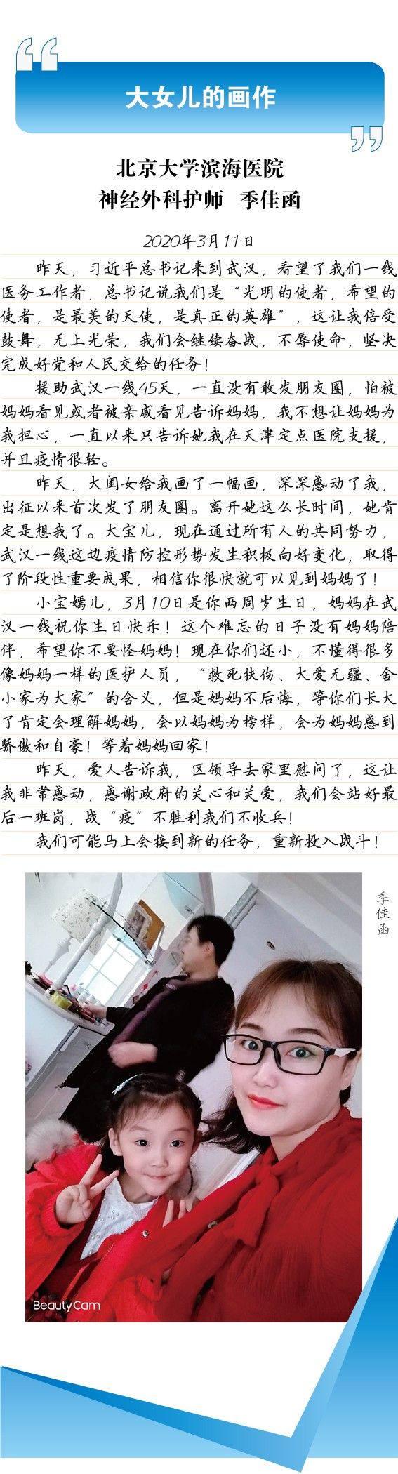 ▲王雪妍的孩子录制的鼓励视频
