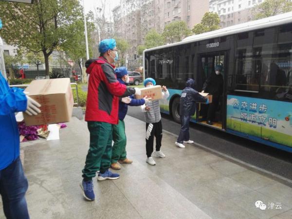 3月12日上午,武汉市青山区委党校的院子里热闹非凡,驻这里的天津第一批支援湖北医疗队(下称天津一队)联络员赵宝伟像个跑堂的伙计,吆喝着分发物资。