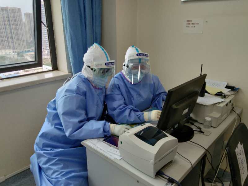 张宗艳(右)和武汉协和医院西院大夫朱露在一起探讨工作