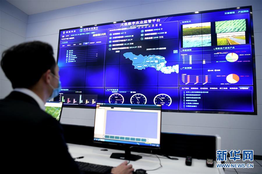 技术人员使用数字农业监管平台查看农作物各项数据(2月24日摄)。新华社记者 王曦 摄