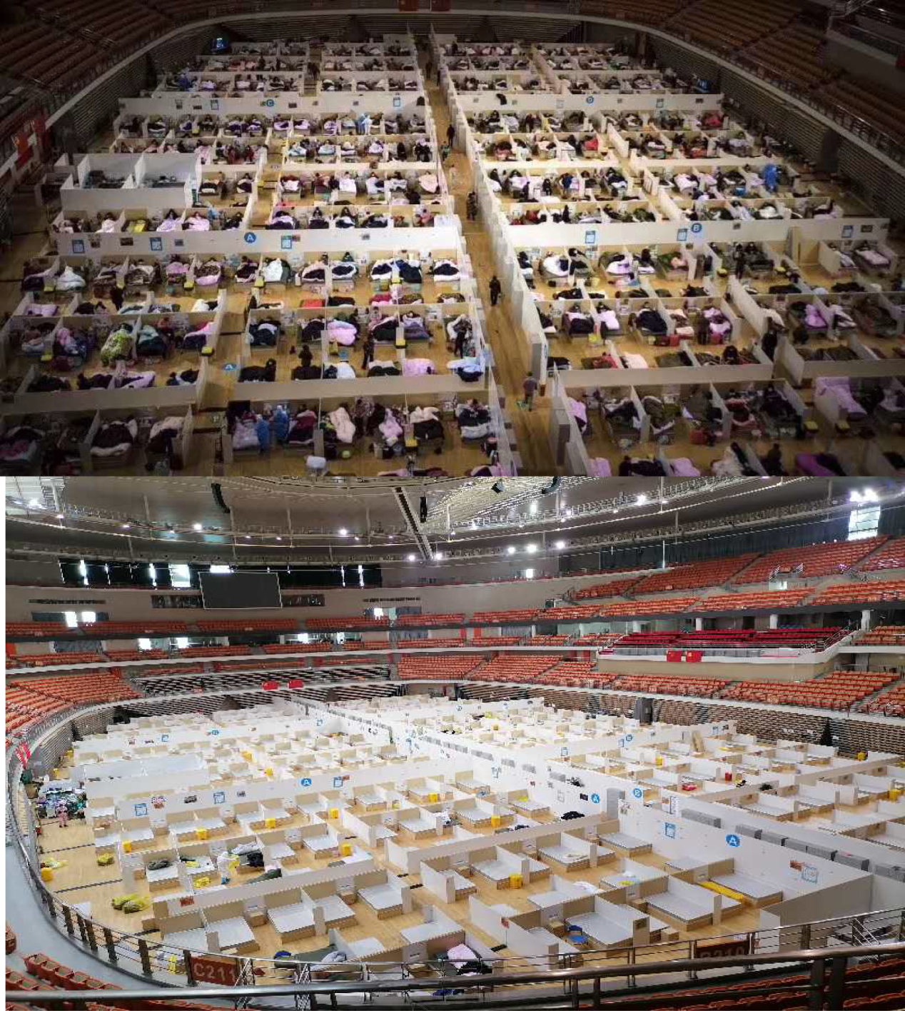 完成最后一批患者的欢送仪式,我忽然想去看看这些天我们始终坚守的这块“阵地”的全貌。顺着体育馆的台阶,我一步步走到最高处。这一刻好安静啊,这里好空旷啊!也许下一次这里人声鼎沸时,该是在举办体育盛事了吧!