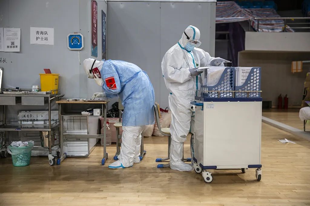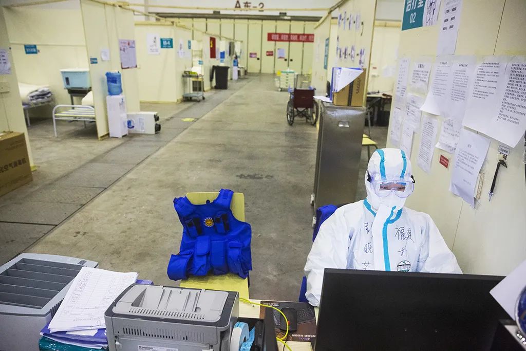 3月5日凌晨,东西湖方舱医院内,福建医疗队队员还在工作。人民日报记者 张武军 摄