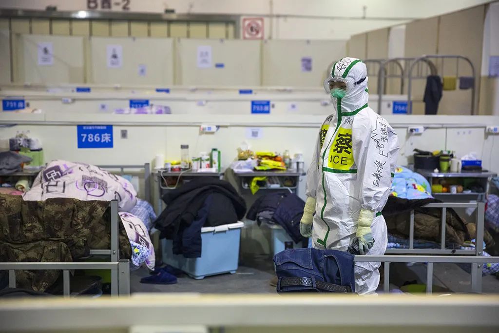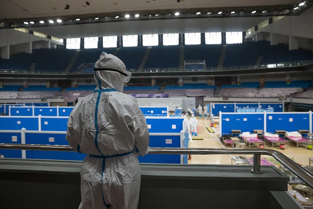 武昌方舱医院休舱前的最后一个夜晚,偌大的C区只有29位已经康复等待天亮出院的患者,其余上百张床位都清空了。中国摄影家协会 李舸 摄