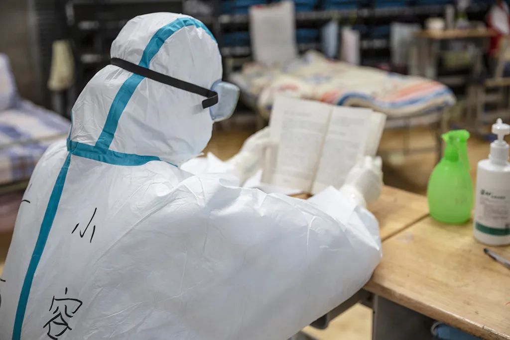 正在阅读的医务人员。人民日报记者 张武军 摄