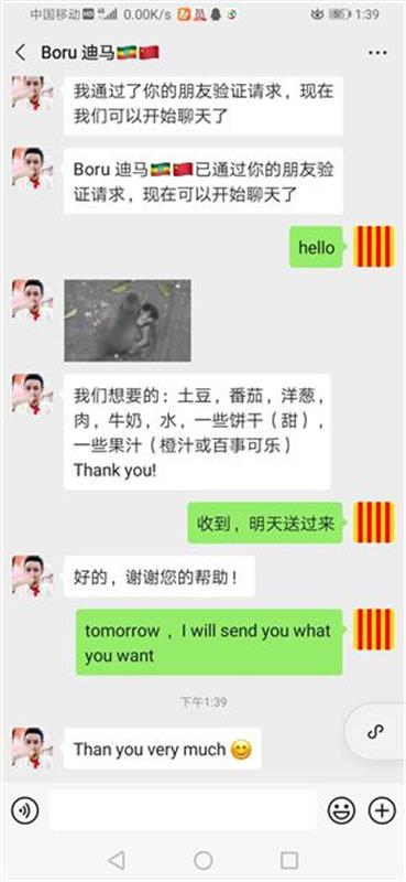 滞留在武汉的50多天里,迪马十分焦虑,社区进行上门排查,得知迪马的情况后,扬子江社区郭书记和市交通运输局下沉干部决定主动对其帮扶,在添加迪马微信后,通过网络联系关心迪马的近况。不仅定期看望迪马,还为其购买了土豆、洋葱、番茄、肉、牛奶、果汁等生活物资和防护物资。