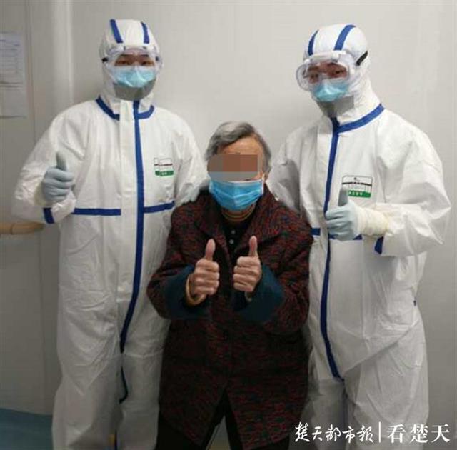 楚天都市报3月13日讯 (记者刘迅 通讯员彭祎)“你们看,我都能好,你们一定更有希望康复!”3月10日,武汉亚心总医院19楼2病区新冠肺炎隔离病房里,90岁的周婆婆说。历经27天的住院治疗后,她成功战胜了疫魔,成为该院最年长的新冠肺炎康复者。