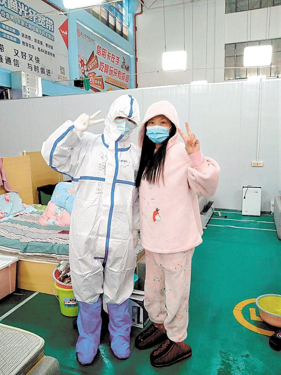 刘明星随即联系新洲方舱医院,表明进方舱医院服务患者的急切愿望,并如愿成为一名志愿者。她又发动新洲籍大学同学刘慧敏到方舱医院并肩战“疫”。