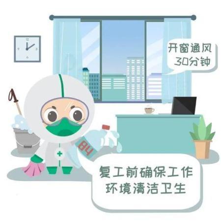 办公场所干净整洁,清洗擦拭按时杀菌。酒精消毒剂,防患都备齐。加强通风重保暖,佩戴口罩按规范。