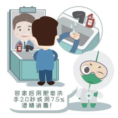 下班即刻回家,不做无益逗留。随身物品,消毒放置,清理衣鞋,丢弃口罩。把手开关擦拭干净,开窗确保空气流通。