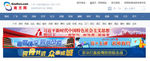 网民可登录南方新闻网,在首页点击图片(红框所示)进入专题PC页面;