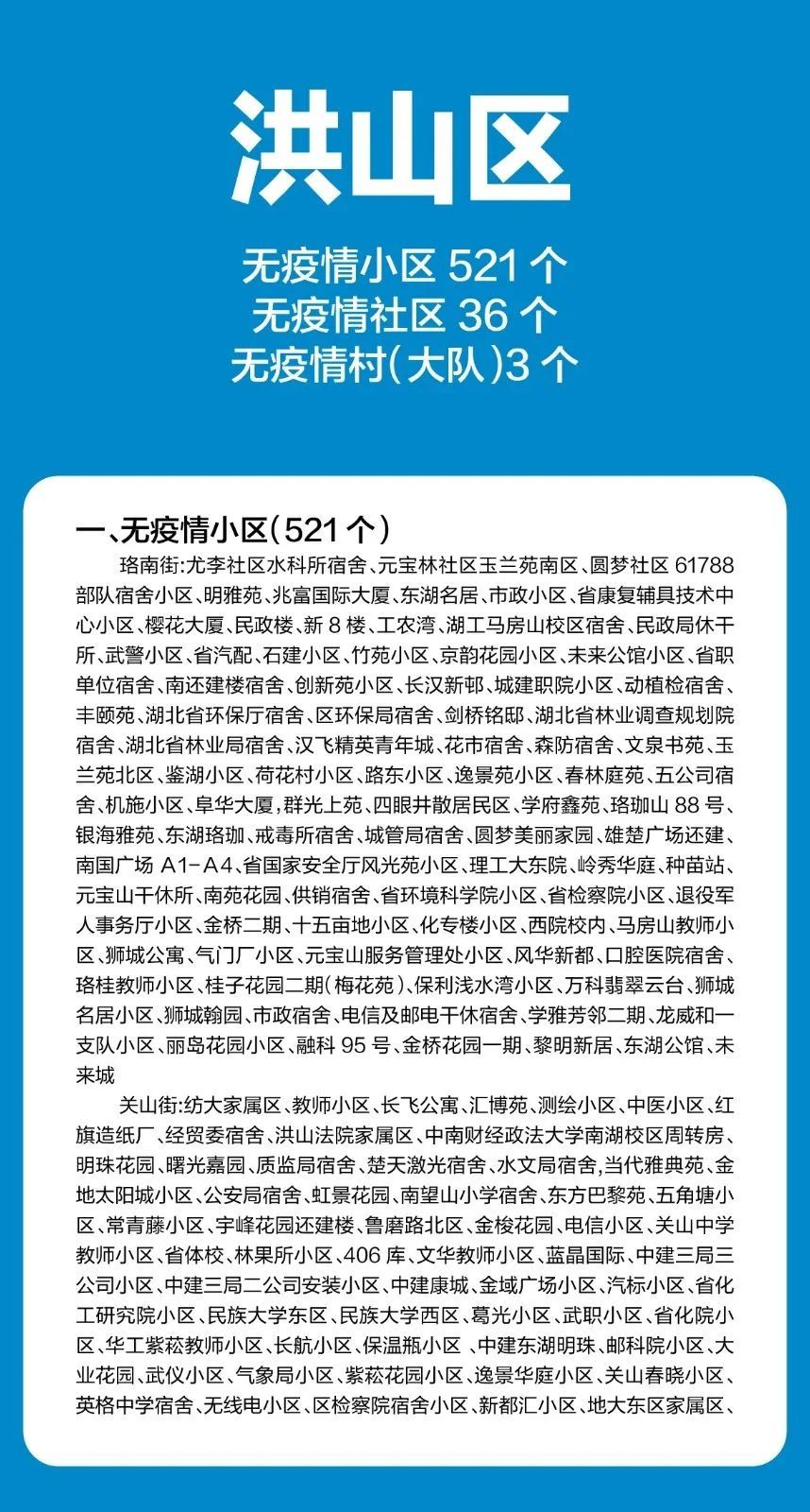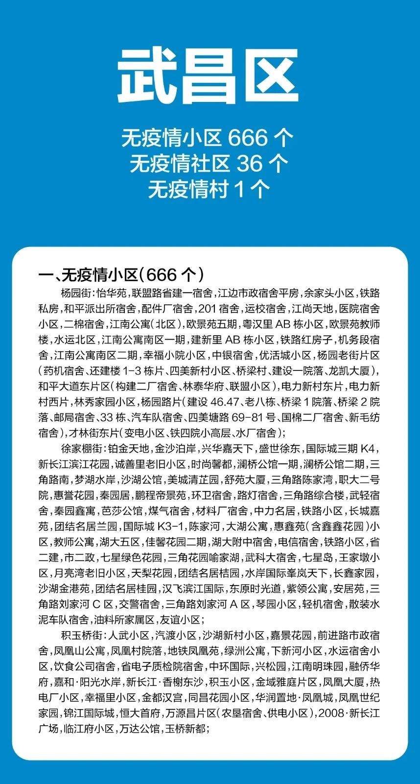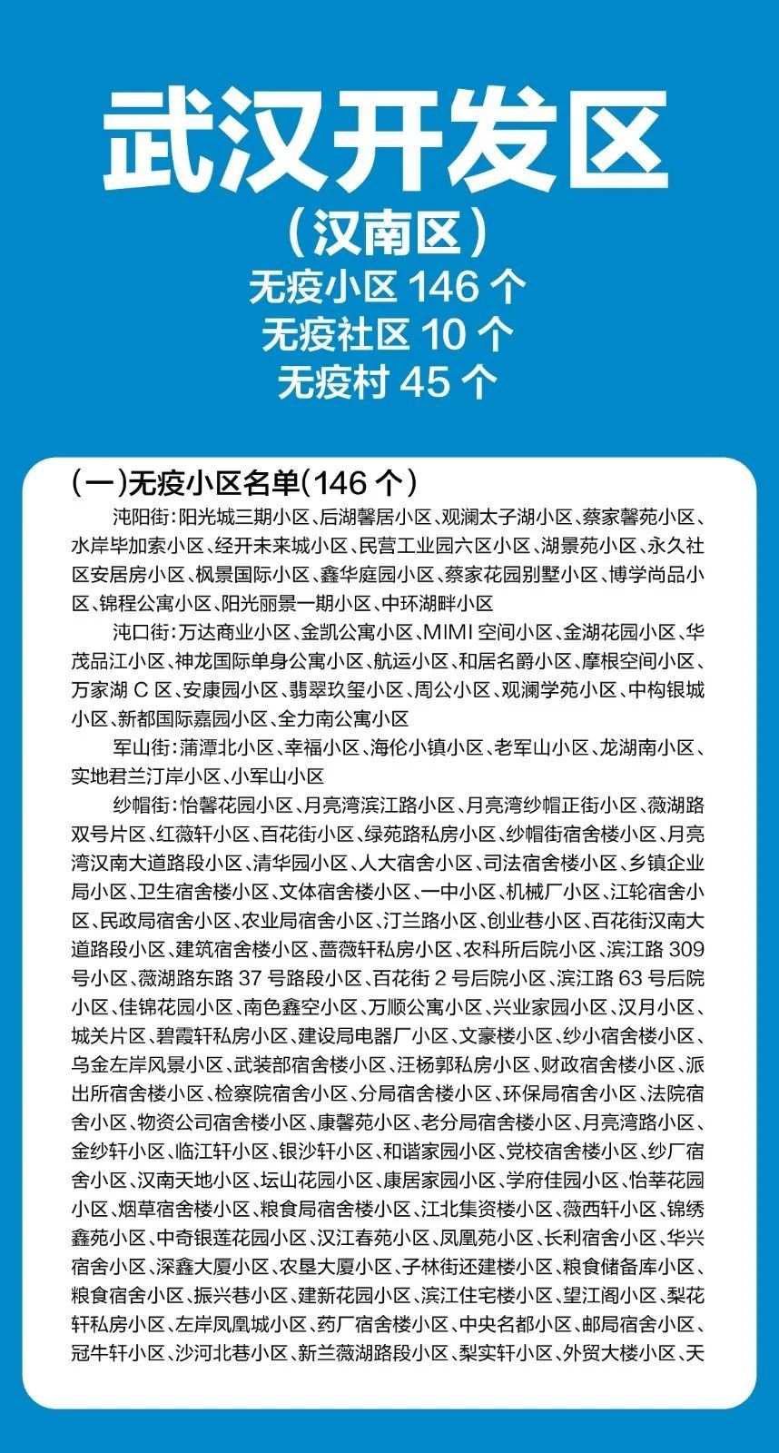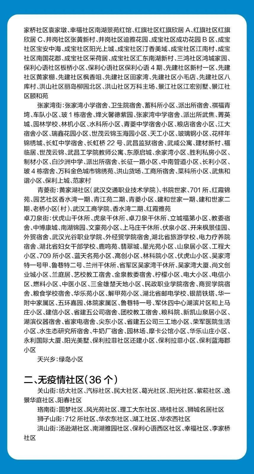 3月14日,武汉市新冠肺炎疫情防控指挥部社区疫情防控组公示武汉市第四批无疫情小区、社区、村(大队)名单。