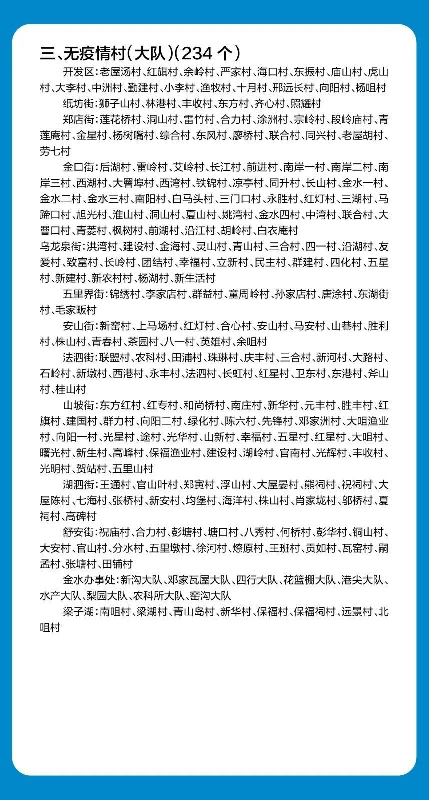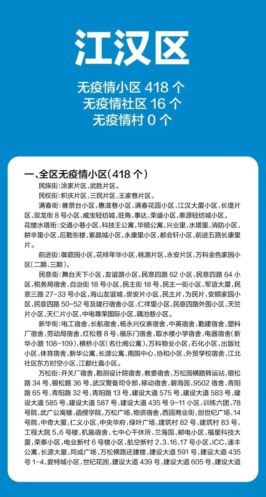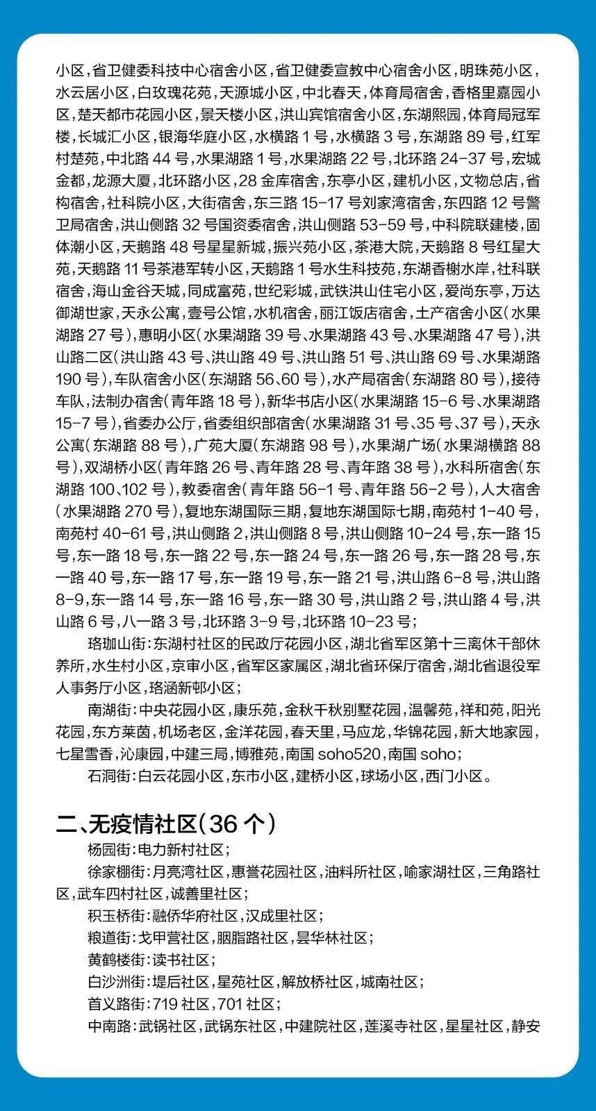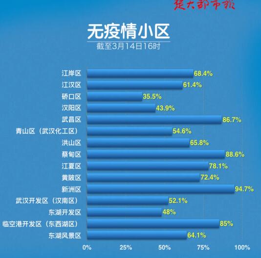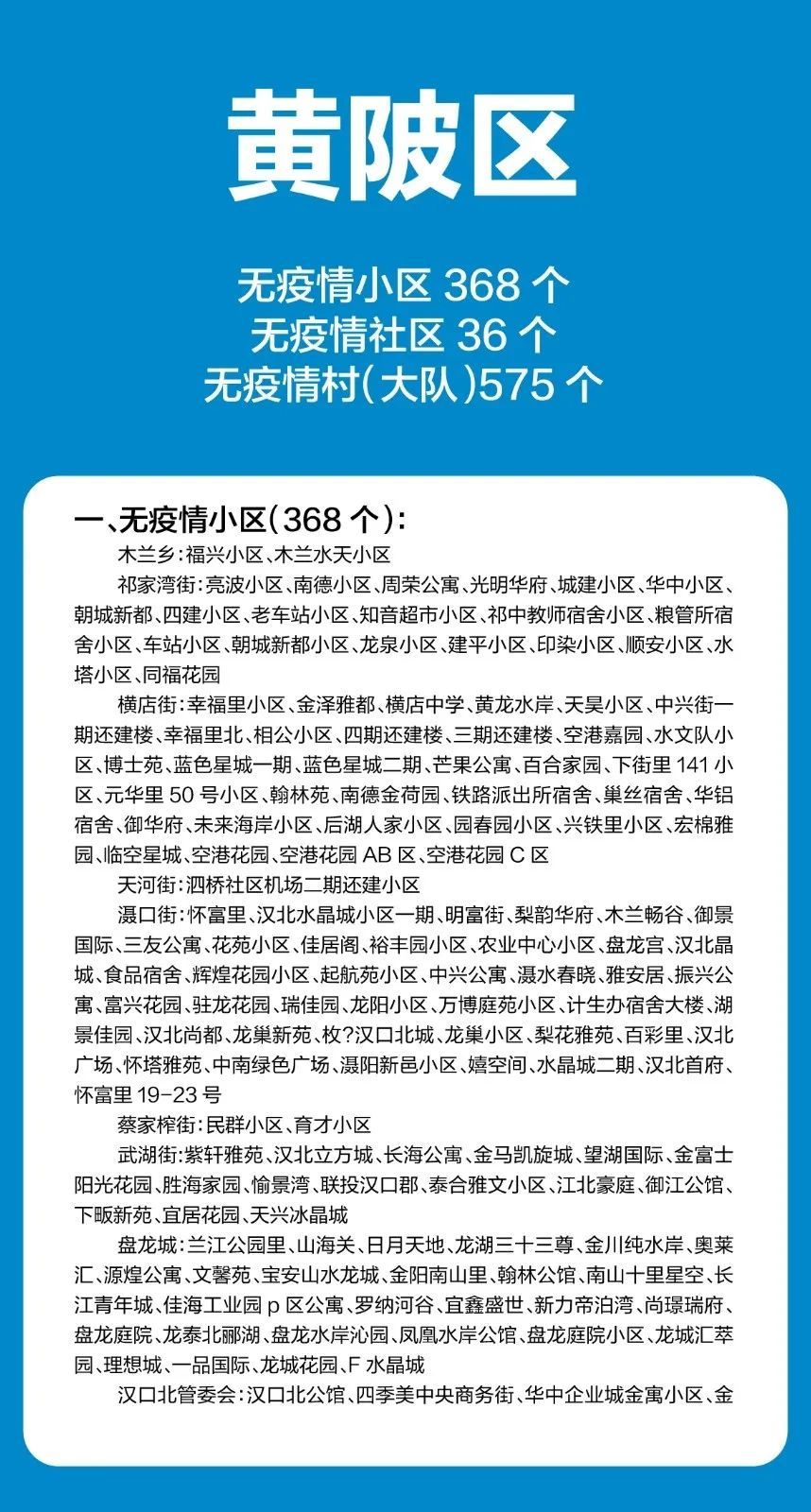 3月14日,武汉市新冠肺炎疫情防控指挥部社区疫情防控组公示武汉市第四批无疫情小区、社区、村(大队)名单。