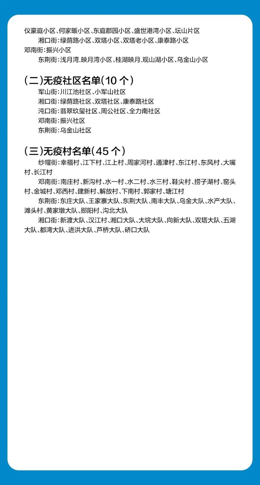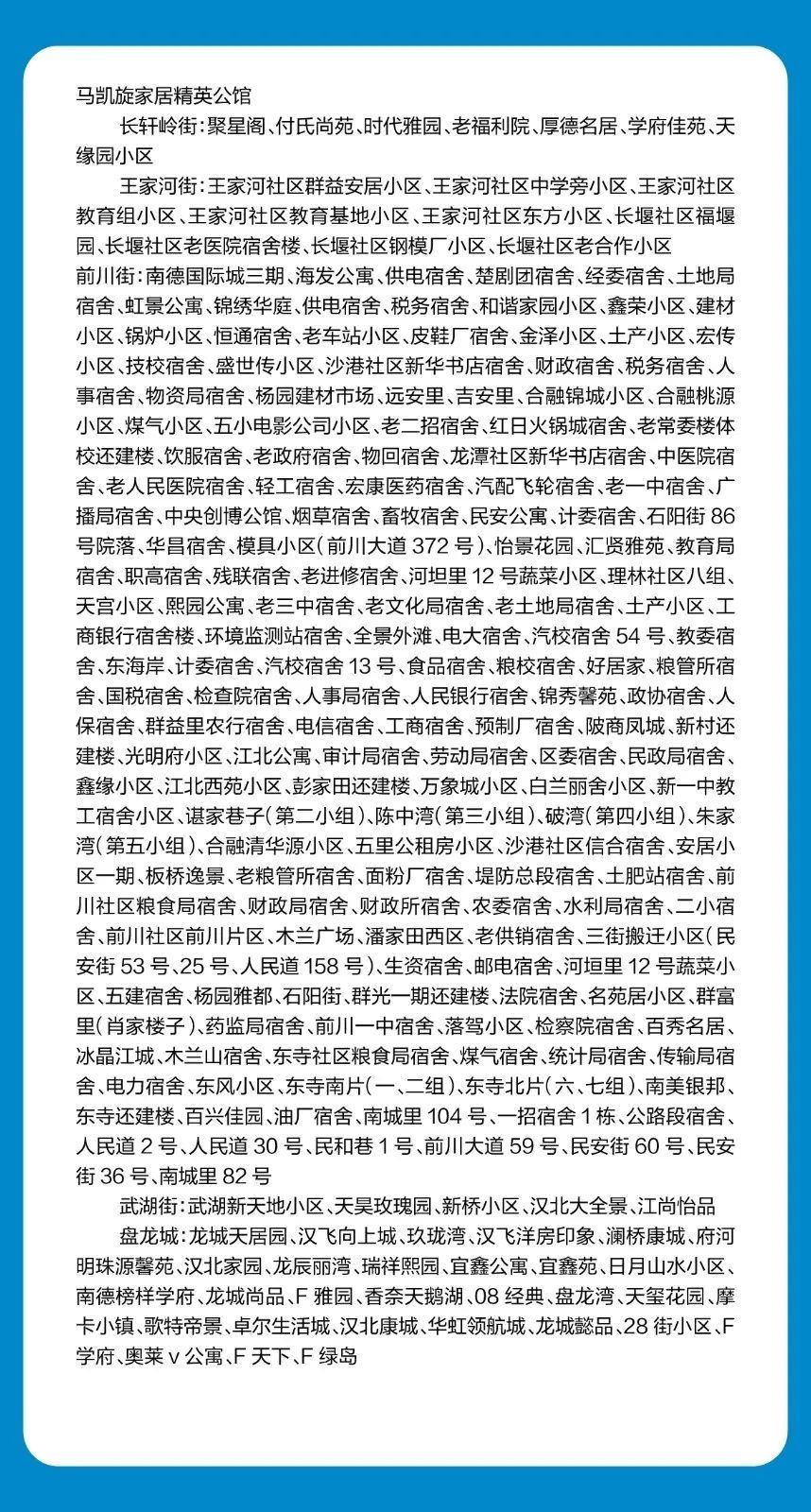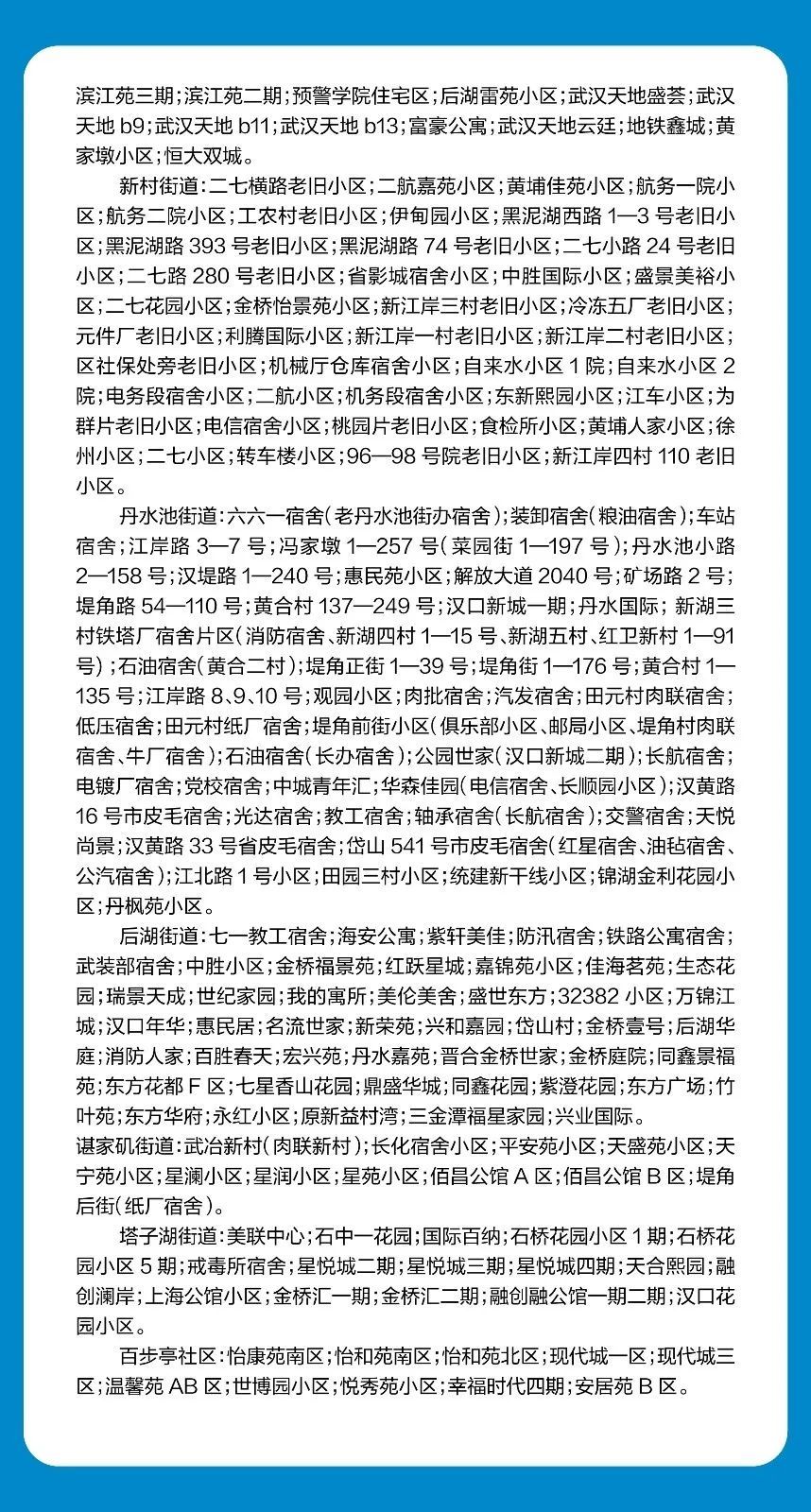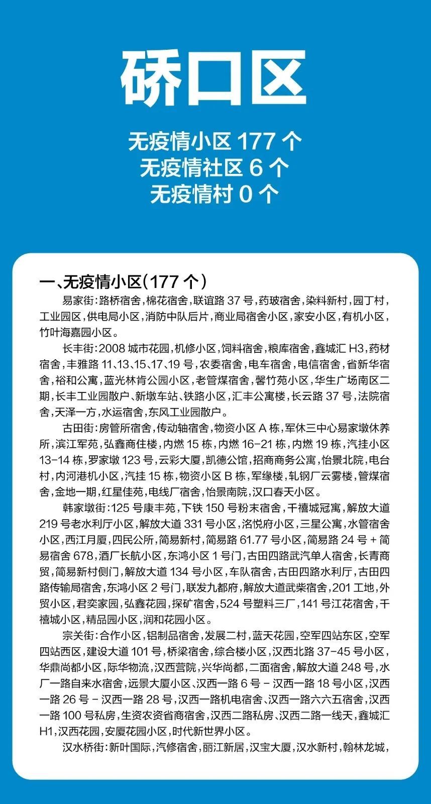 3月14日,武汉市新冠肺炎疫情防控指挥部社区疫情防控组公示武汉市第四批无疫情小区、社区、村(大队)名单。
