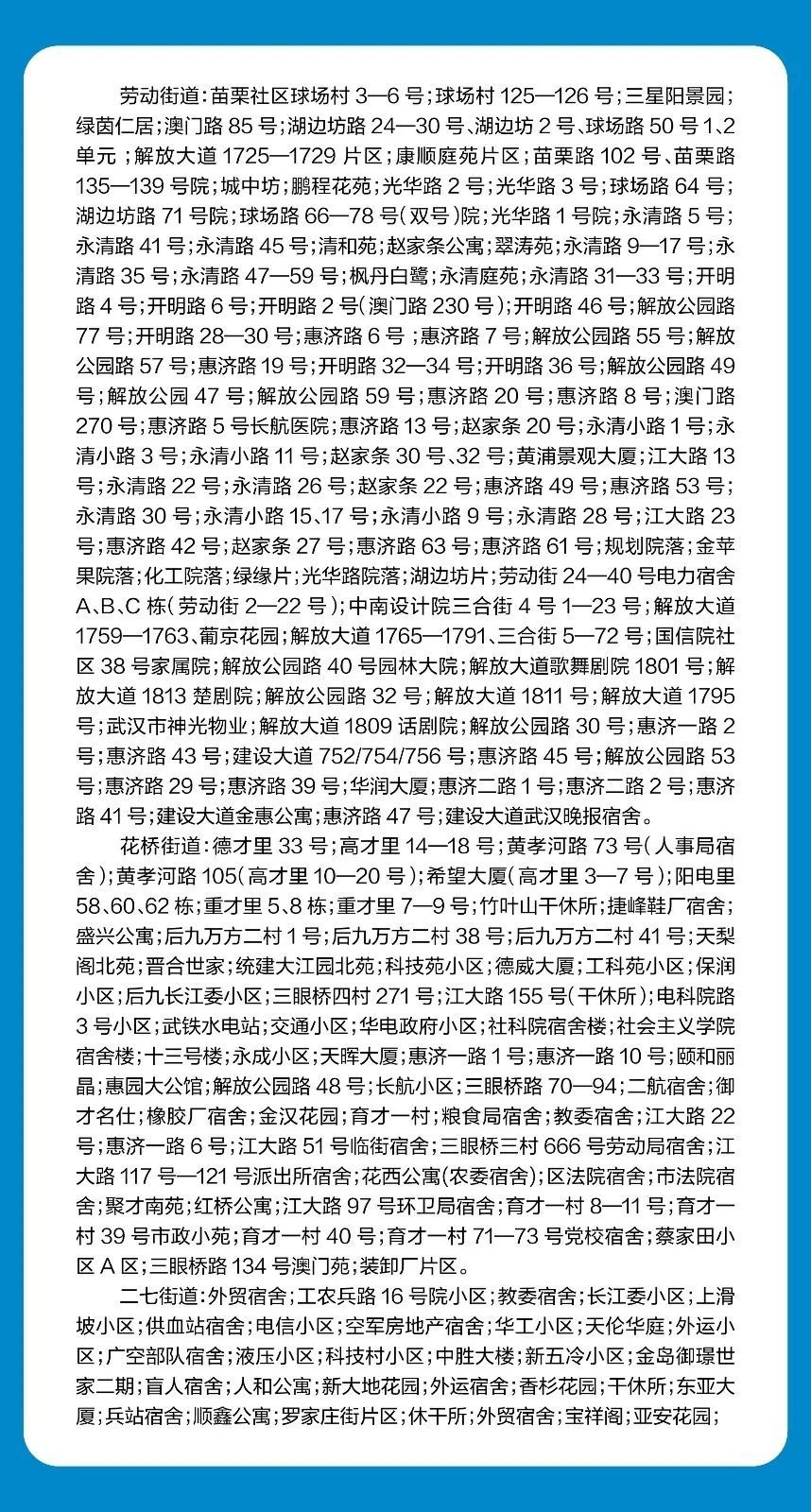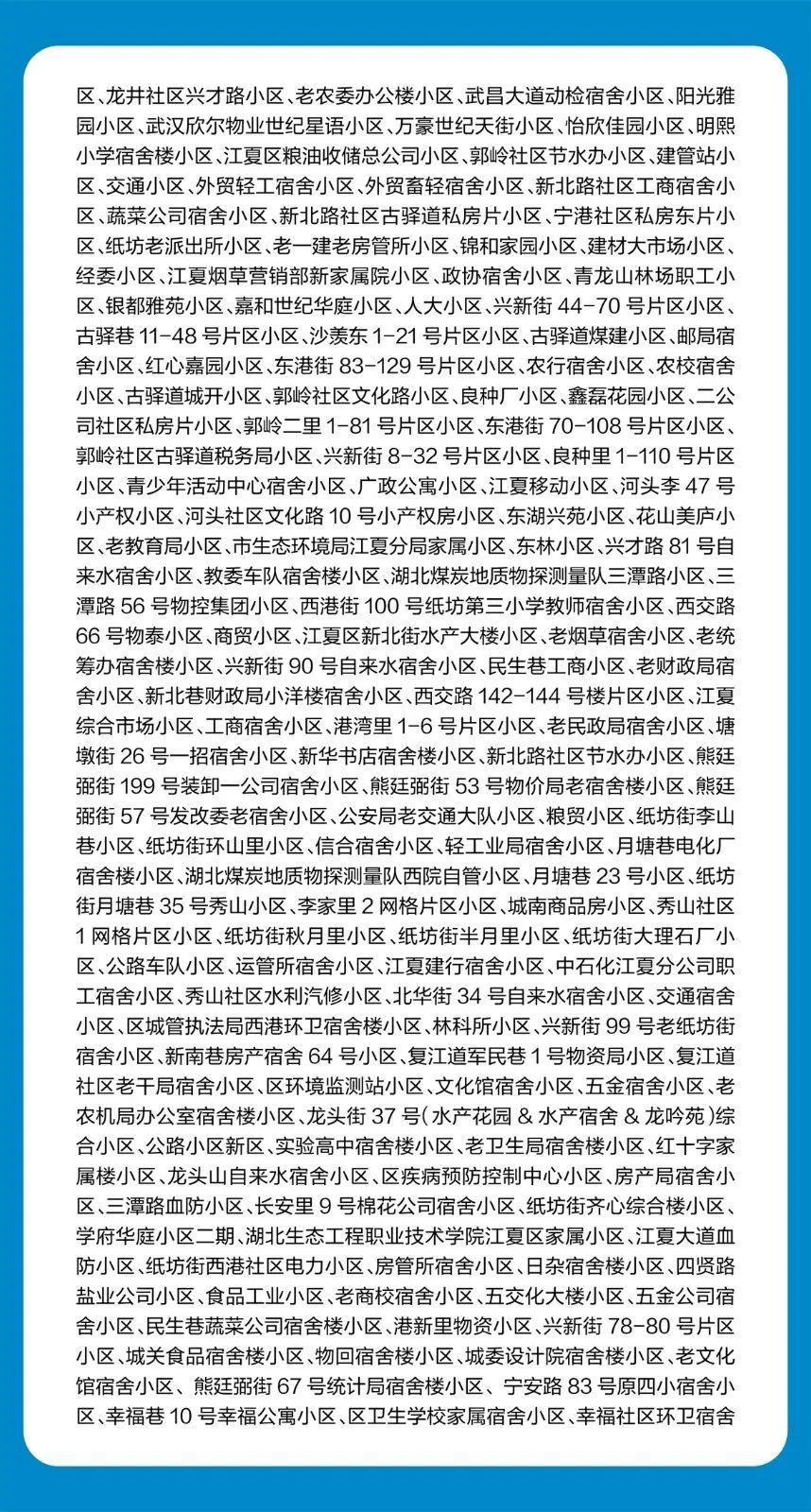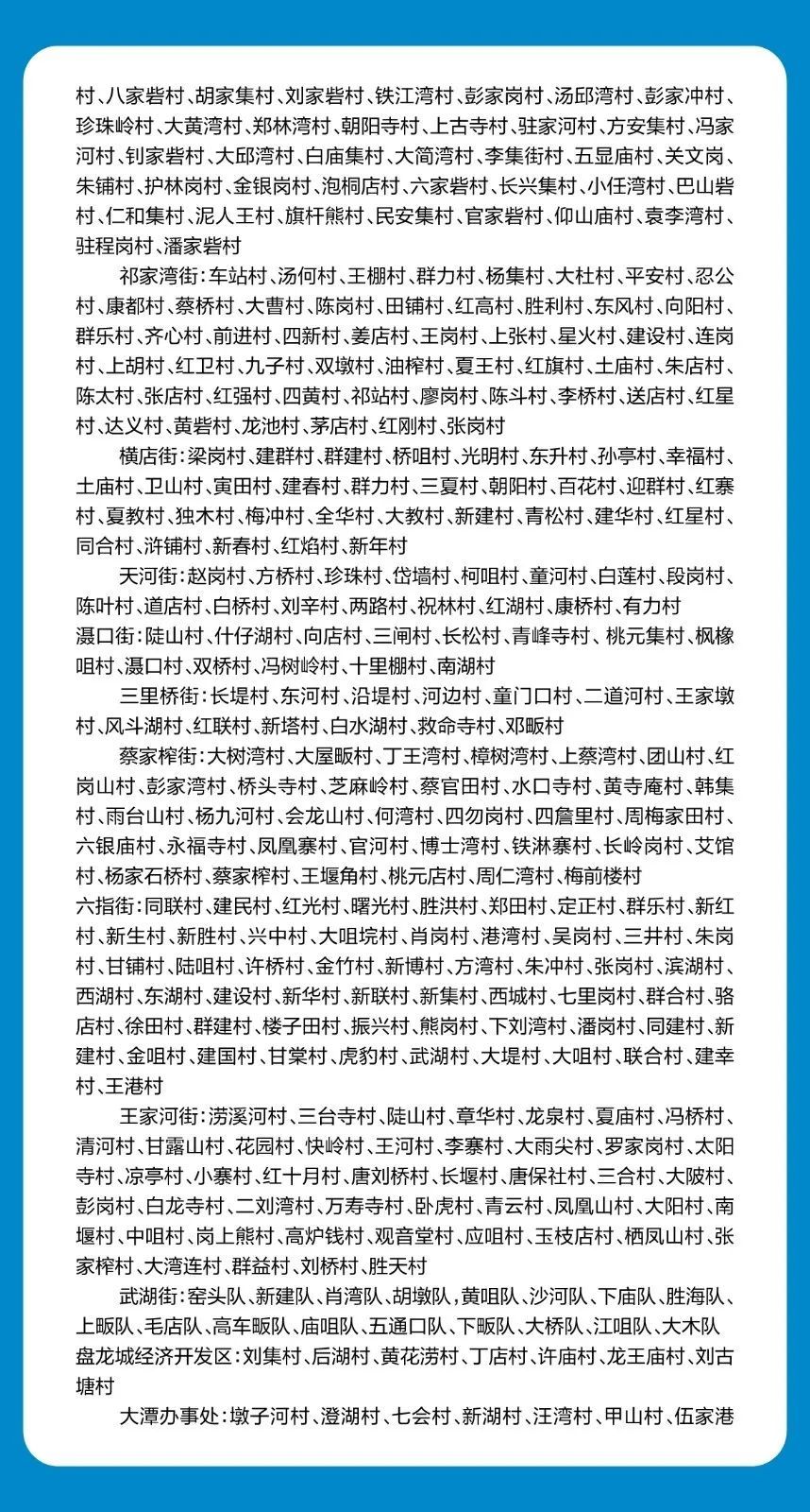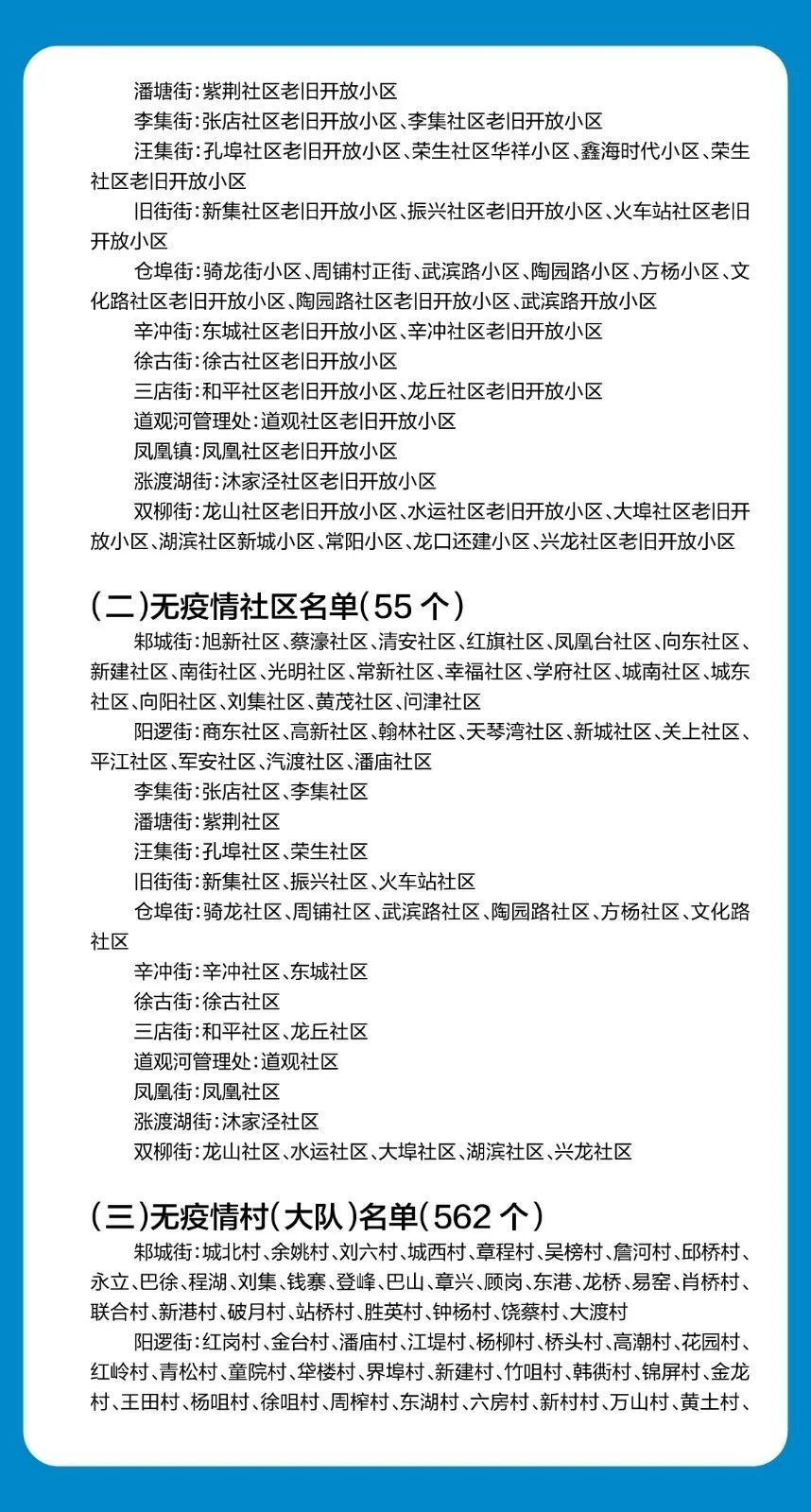 3月14日,武汉市新冠肺炎疫情防控指挥部社区疫情防控组公示武汉市第四批无疫情小区、社区、村(大队)名单。