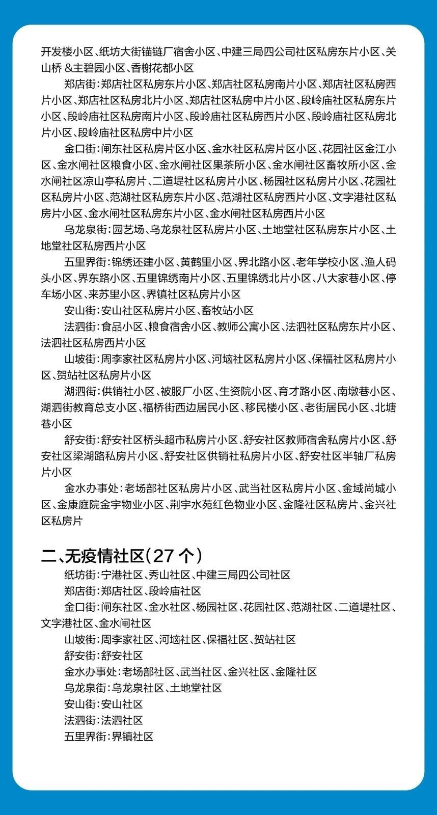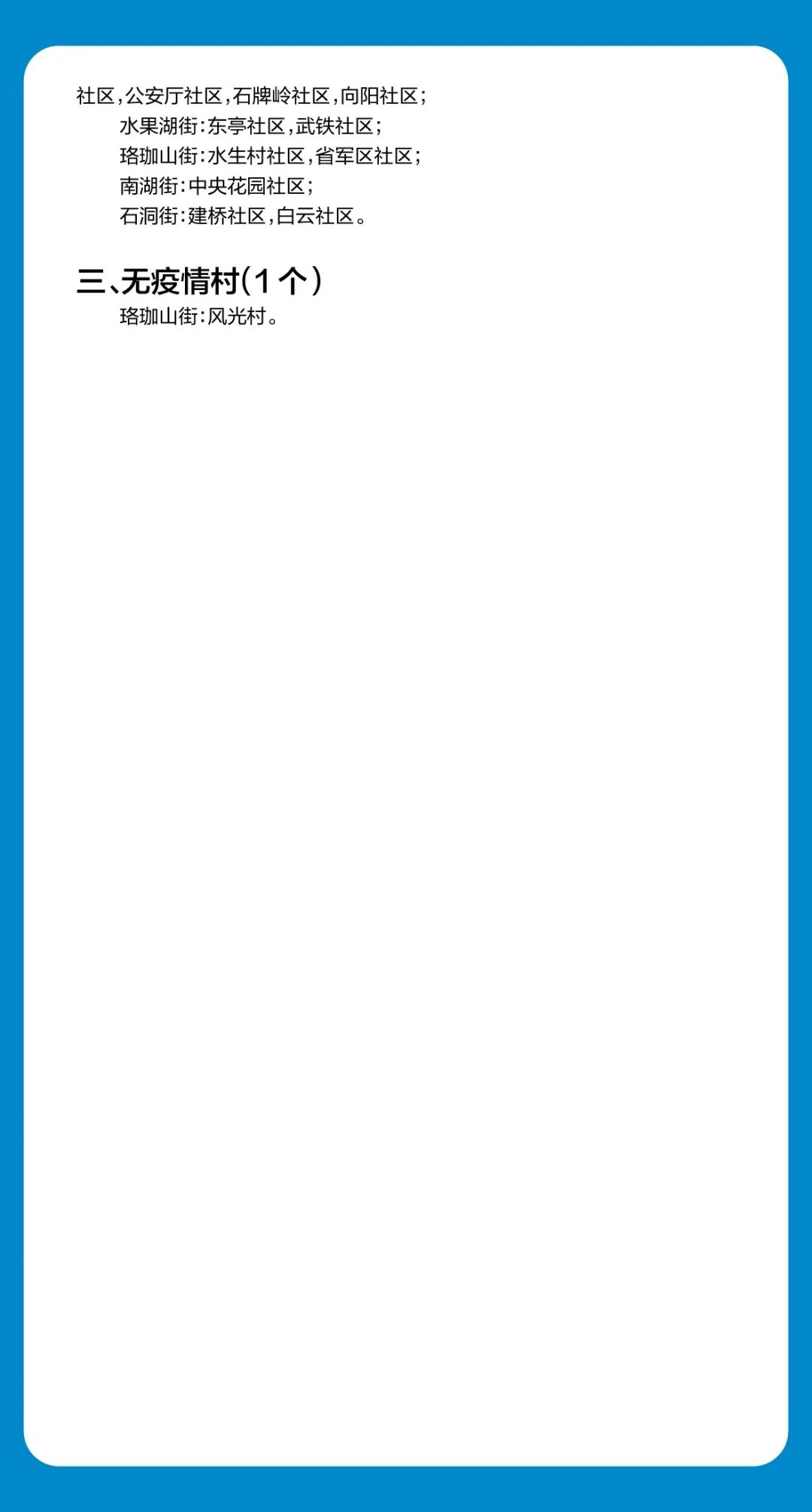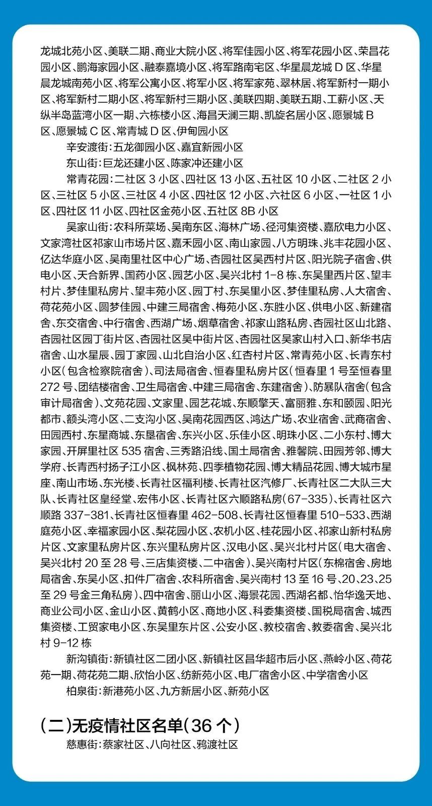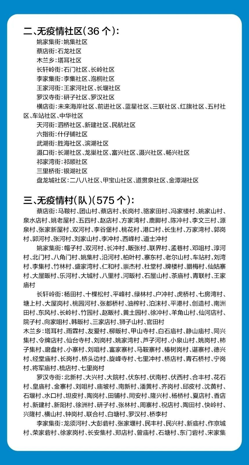 同时因疫情变化核查处理,无疫情小区取消或暂停27个,无疫情社区取消或暂停3个,无疫情村(大队)取消或暂停9个。