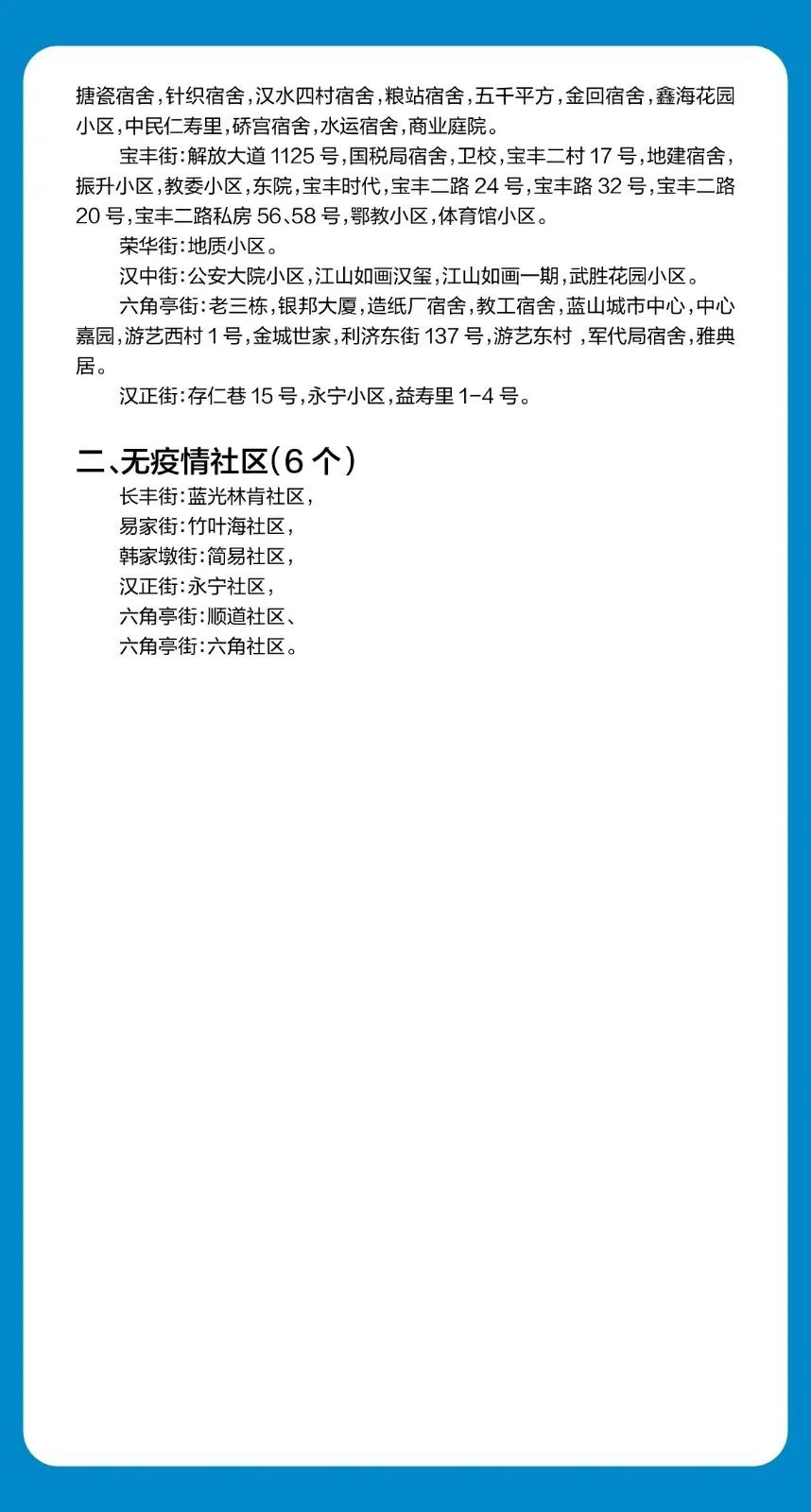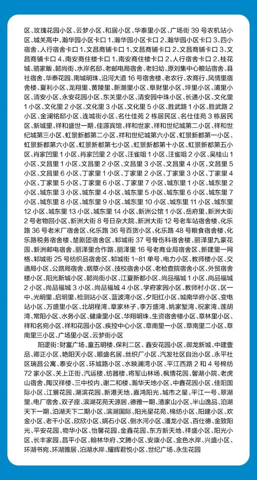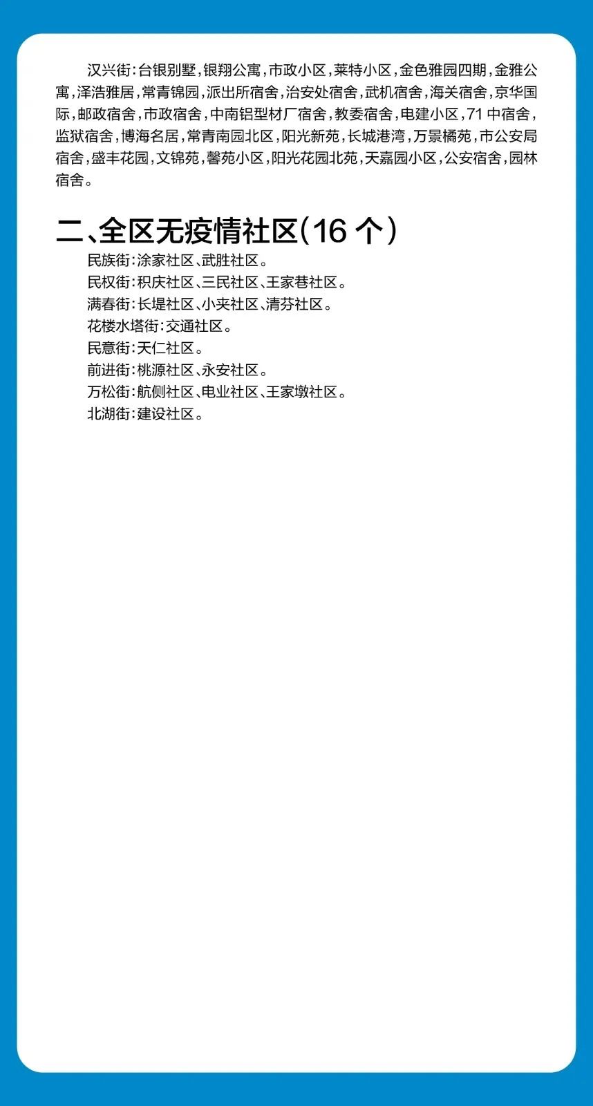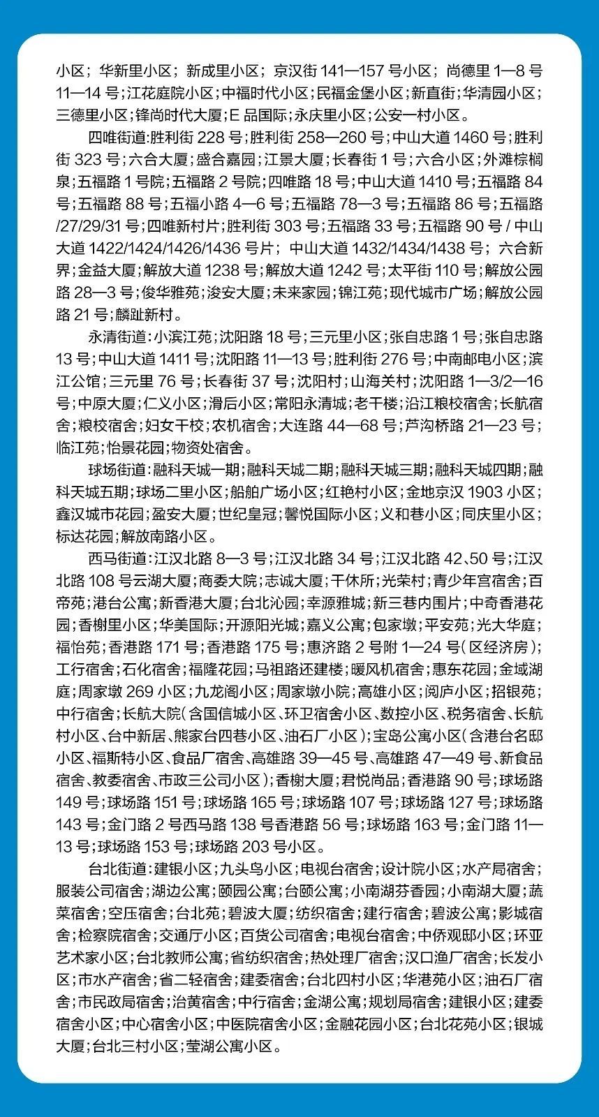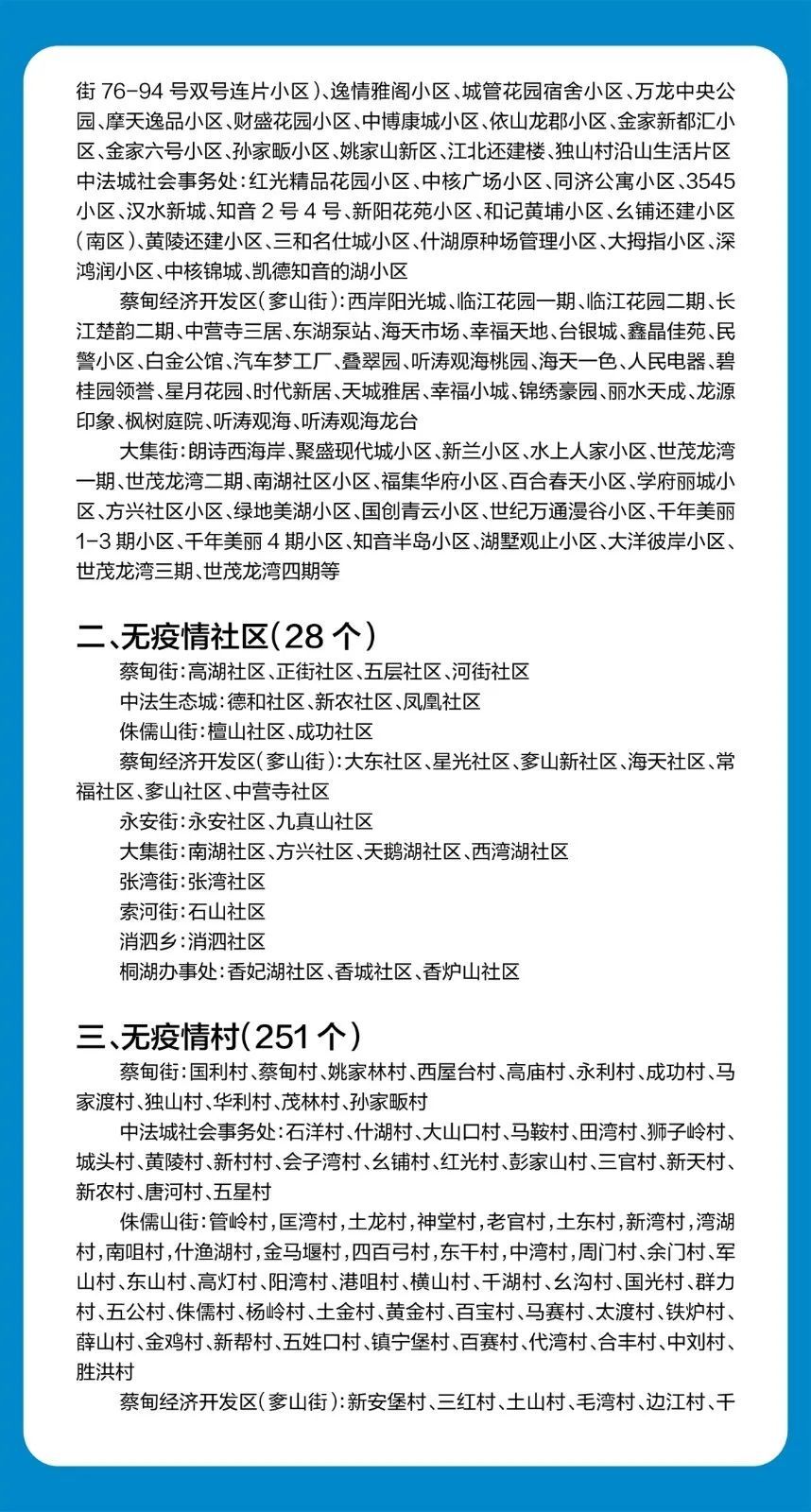 同时因疫情变化核查处理,无疫情小区取消或暂停27个,无疫情社区取消或暂停3个,无疫情村(大队)取消或暂停9个。