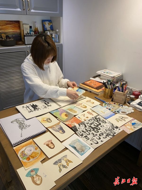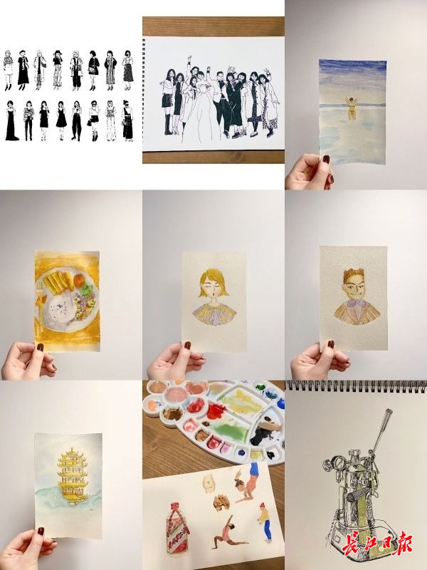 此后,张梦的画作里,不仅多了色彩,也增加了风景。“最近感觉疫情形势越来越好,所以就画了黄鹤楼,因为是武汉的标志嘛。”她已经和丈夫还有朋友们约好,疫情结束后,要一起出门写生。“现在是对着照片画,以后要到实地去看看。”