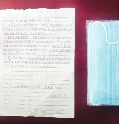 物资保障组工作人员杨喆介绍,与10只口罩相伴的,是一份折叠起来的手写信。才读到一半,杨喆就忍不住哭了。