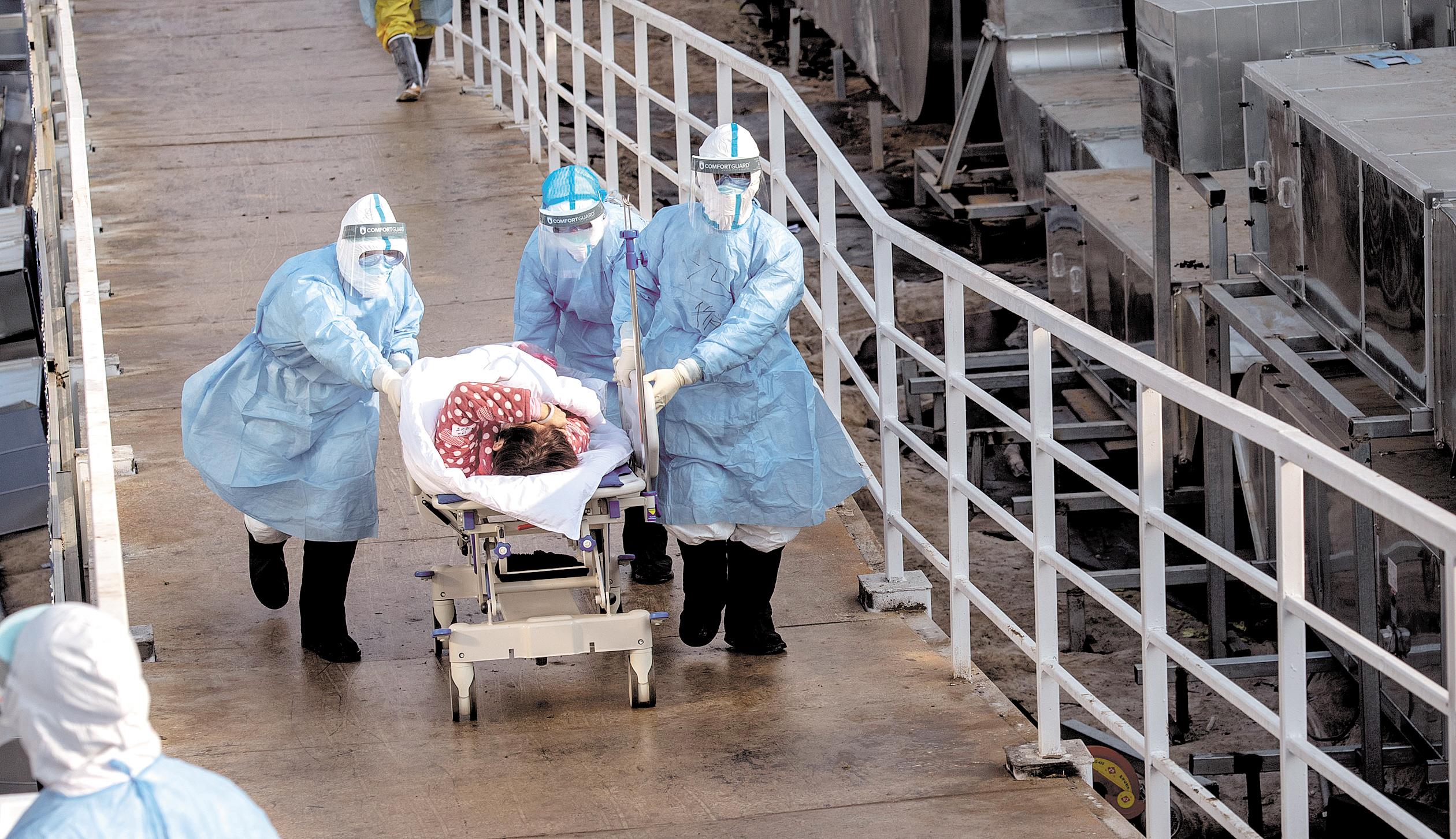2月4日,武汉火神山医院,解放军医疗队队员们接诊首批患者。 (湖北日报全媒记者 魏铼 摄)