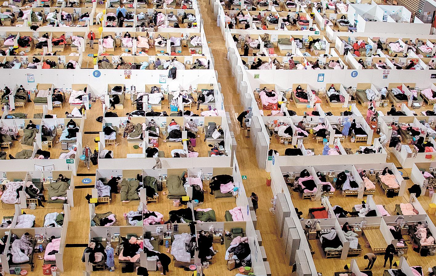 2月5日起,武汉市先后建起了16家方舱医院,收治1.2万余名新冠肺炎轻症患者。图为武汉体育中心方舱医院。 (湖北日报全媒记者 柯皓 摄)