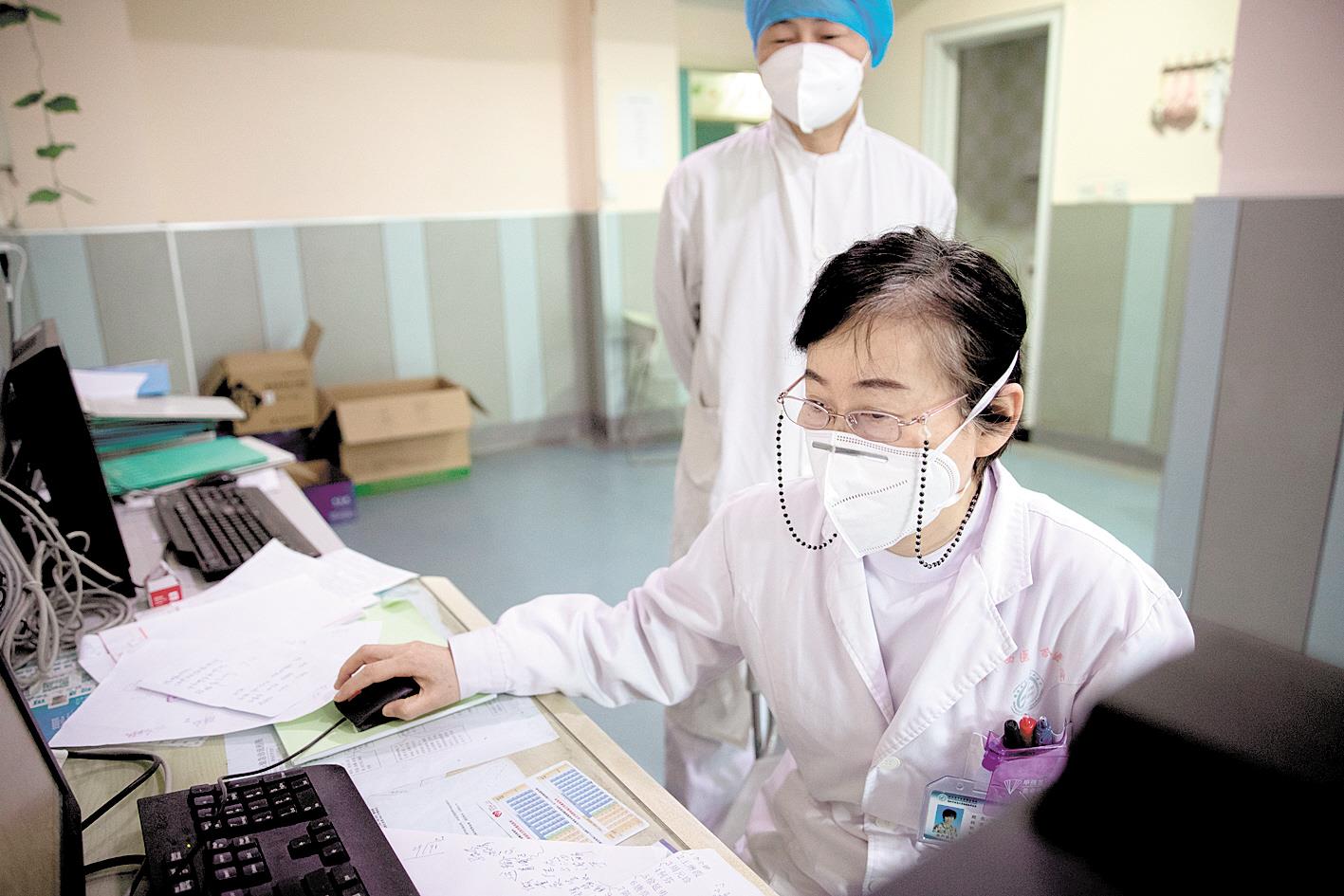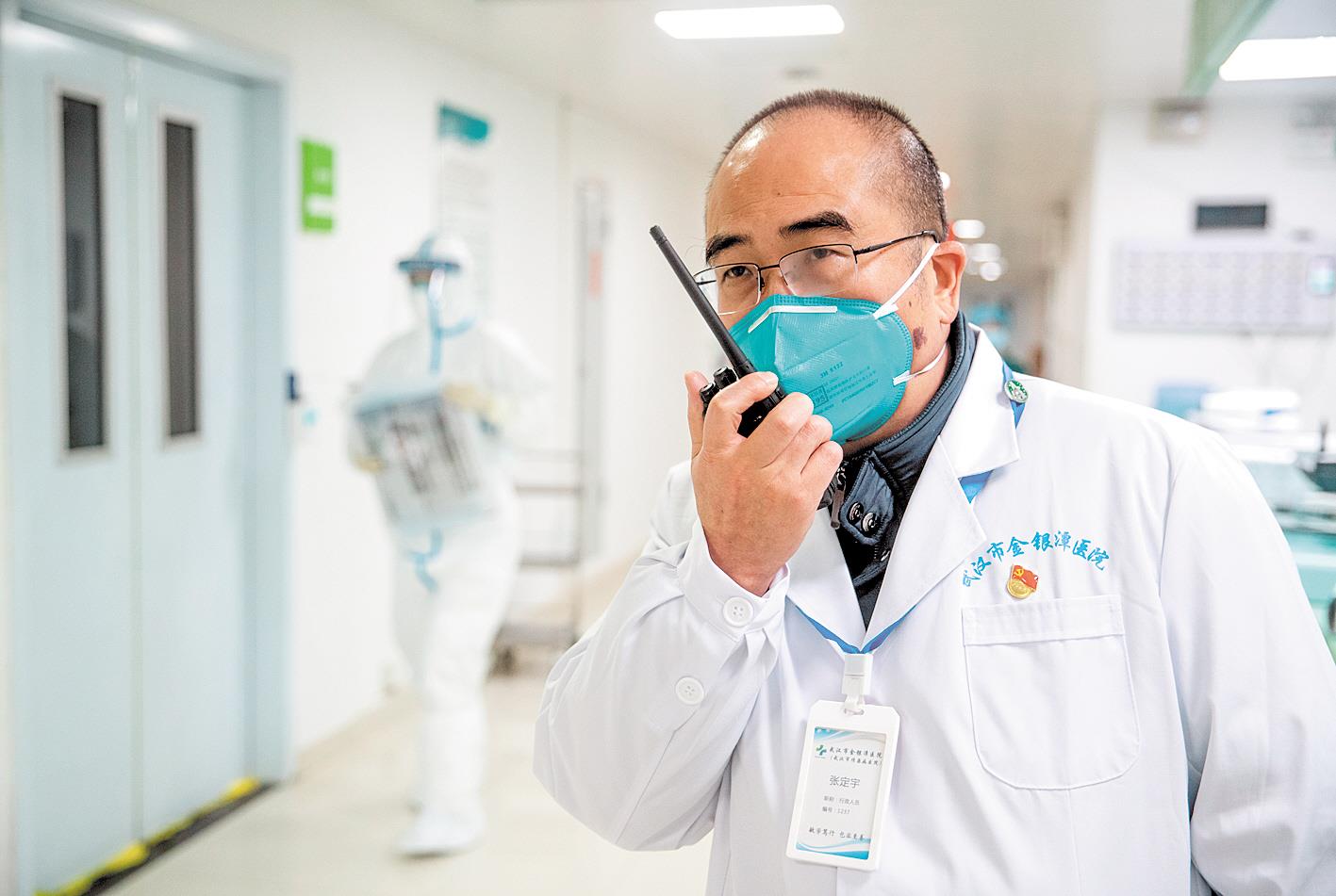 3月11日,张继先在查看患者病情。湖北省中西医结合医院呼吸与重症医学科主任张继先,以超强的专业敏感意识,最早判断并坚持上报新型冠状病毒感染的肺炎疫情,是医院救治一线“带头人”。 (湖北日报全媒记者 柯皓 摄)