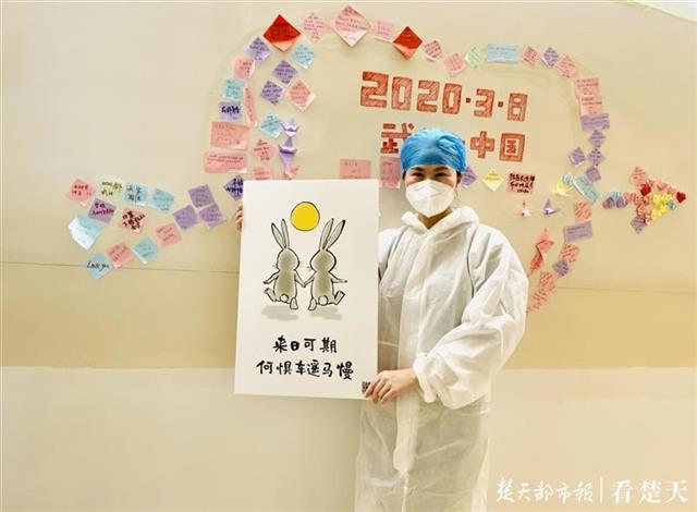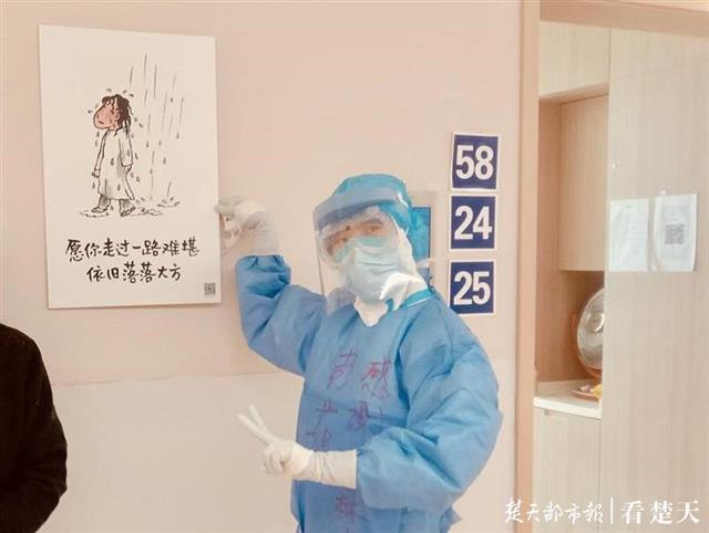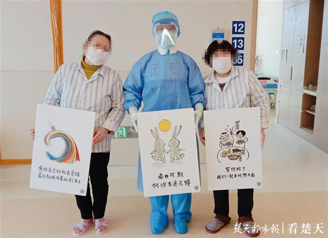 “庚子开年,先苦后甜”“来日可期,何惧车遥马慢”“等你好了,我们一起吃热干面”……看着这些漫画,不少患者会心地笑了起来。在病区里,这些温情的作品,如一道道阳光,带给人们勇气与希望。