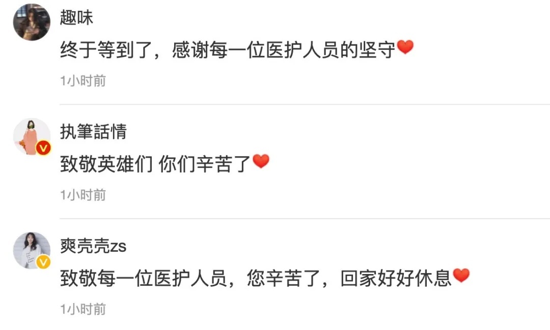 网友:辛苦了!感谢每一位医护人员!