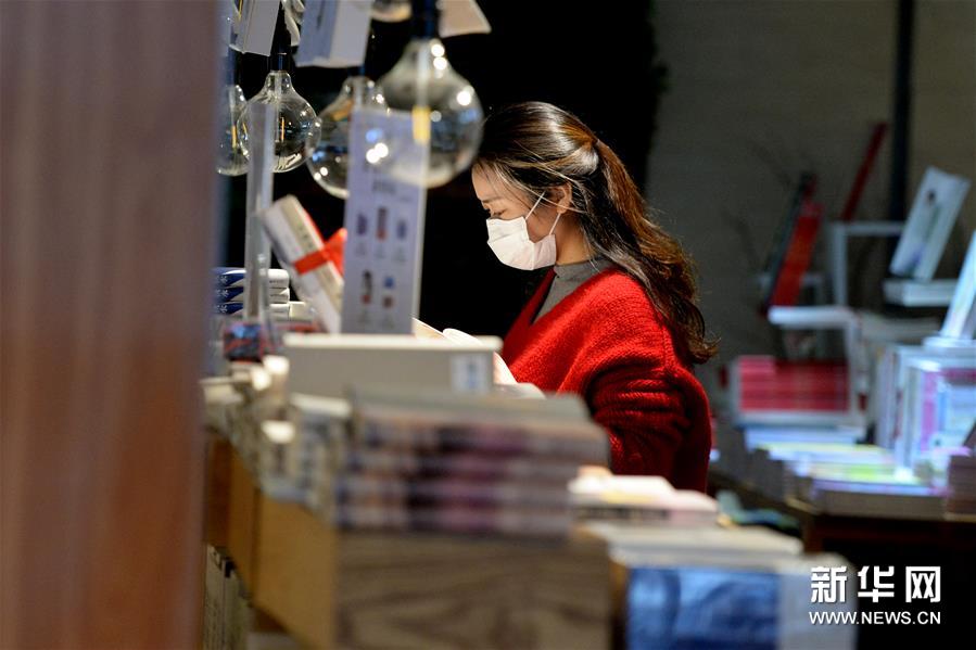 3月16日,在新华书店(三孝口店),读者在翻阅书籍。新华社发(黄博涵摄)