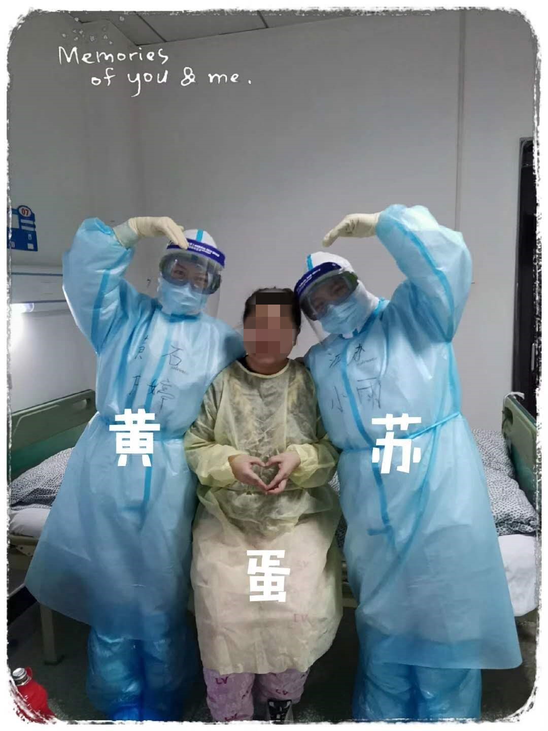 出院前,这位患者流着眼泪,拉着张晓雨和她的小伙伴一定要和她们拍照,千言万语,如鲠在喉,除了说一声谢谢,她不知道还能说什么了。