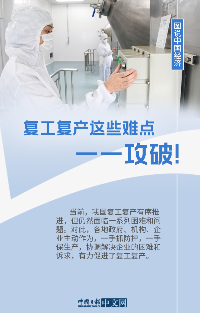 当前,我国复工复产有序推进,但仍然面临一系列困难和问题。对此,各地政府、机构、企业主动作为,一手抓防控,一手保生产,协调解决企业的困难和诉求,有力促进了复工复产。