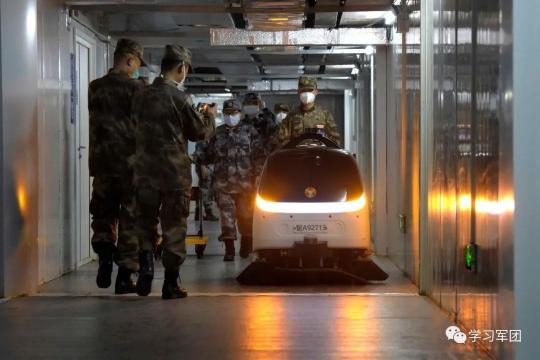 使用智能消杀机器人对病区走廊进行消杀。解放军报记者 范显海摄