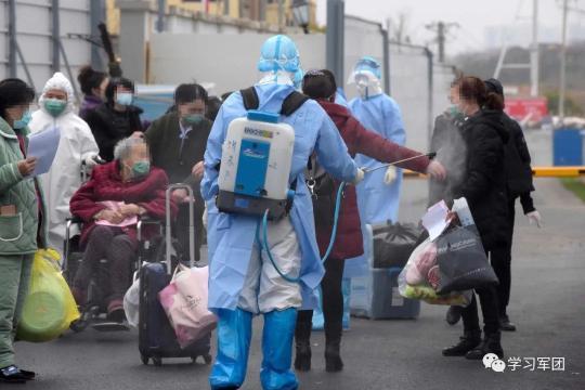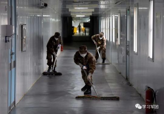 党员带着团员,老兵带着新兵,洗消分队每天像高速旋转的陀螺一样战斗,确保了院区环境无病毒藏身之处,为实现“零感染”作出贡献,他们被医护人员称赞为“守卫火神山的‘降魔神兵’”!