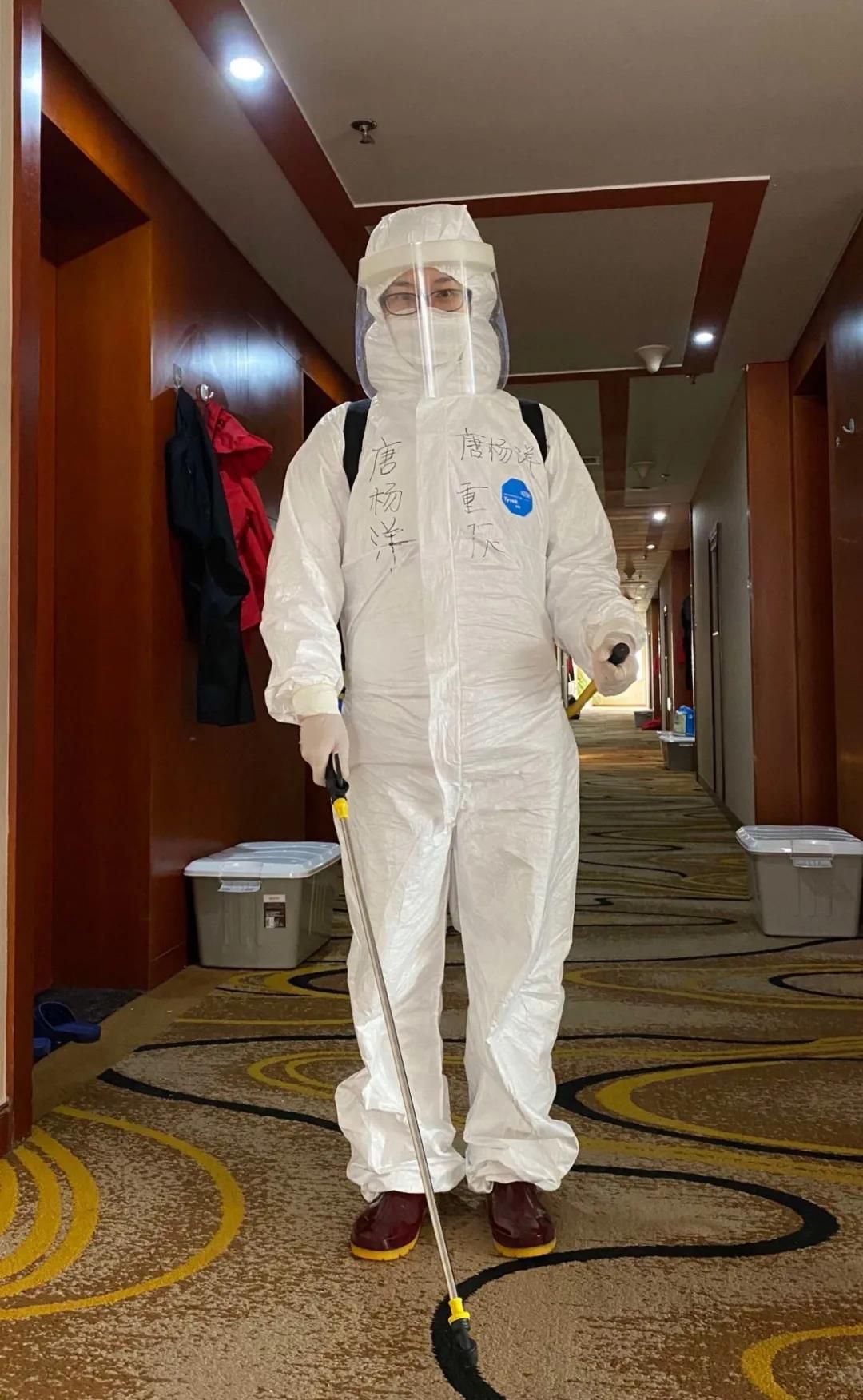 每天清晨,当天空微微亮时,我们“缉毒二人组”就开始一天的消毒工作了,从驻地门口到大厅、到电梯、到过道,每个角落都不放过。因为我们多一分细致,队友们的健康就多一分保障。