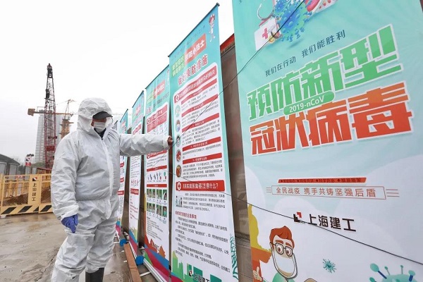 上海博物馆东馆建设现场防疫宣传。
