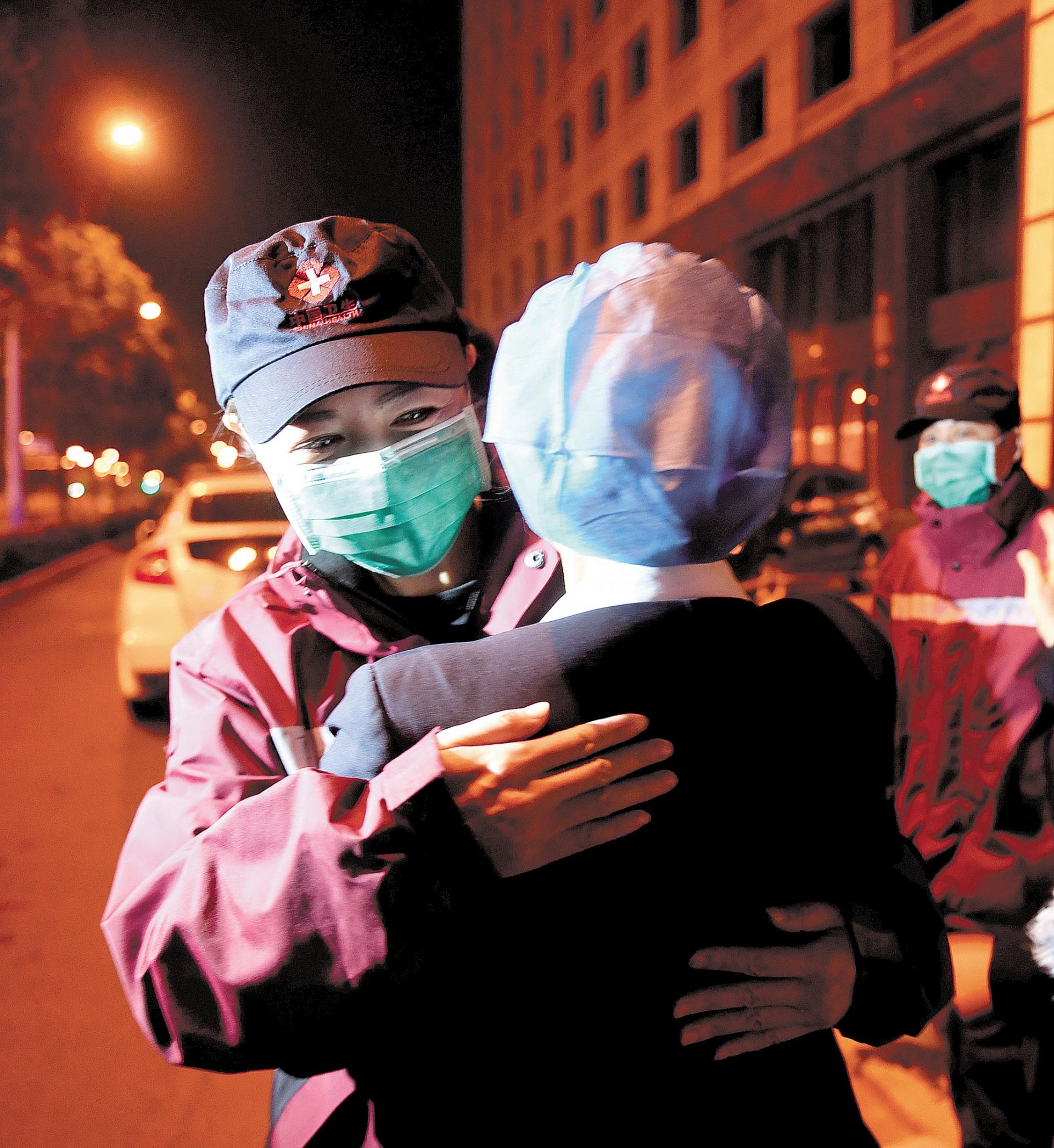 朝夕相处43天,留下太多感动与回忆。3月17日清晨6时,武汉天际丽豪大酒店门前,陕西国家紧急医学救援队队员与驻地工作人员拥别,双方都禁不住流下热泪。当日,41支医疗队完成援汉任务踏上归途,陕西国家紧急医学救援队为最早启程返回的一支救援队。 (湖北日报全媒记者 田悦 摄)