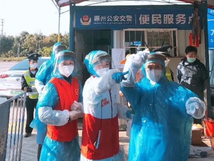 “您好,请配合测一下体温!”“您好,请扫码登记一下信息。”惠大高速水口互通出口处,穿着红马甲、防护服、戴着防护面罩的王媚一遍遍地重复着这些话,由于长时间说话,又不能喝水,她的声音已经嘶哑了。