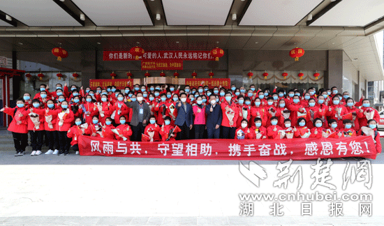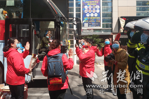 荆楚网客户端一荆楚网消息(记者董育雄 王扬帆 通讯员 张宾 肖满)来时义无反顾,走时依依不舍。继天津援鄂第十三批医疗队撤离之后,3月18日,内蒙古援鄂第三批医疗队102人告别武汉。当天上午,在武汉市洪山区未来城大酒店门口,举办了一场简短的送别仪式,洪山区代表为医疗队送上锦旗、鲜花和礼物。
