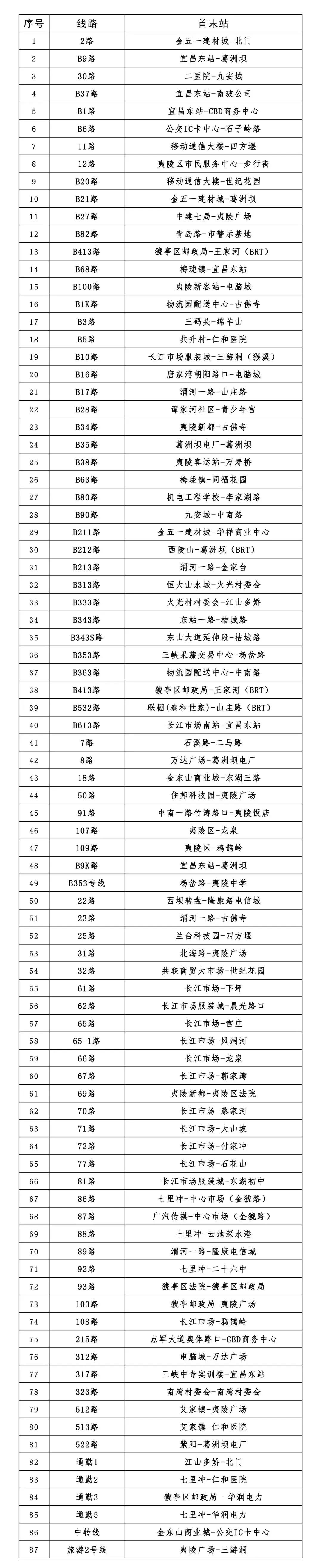 据宜昌发布消息,为进一步服务企业复工复产、适应市民基本公共交通出行需求,现就进一步有序恢复宜昌城区公交线路通告如下。