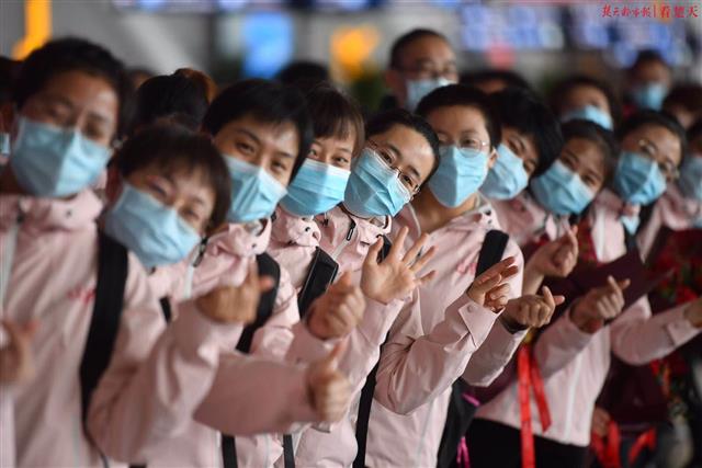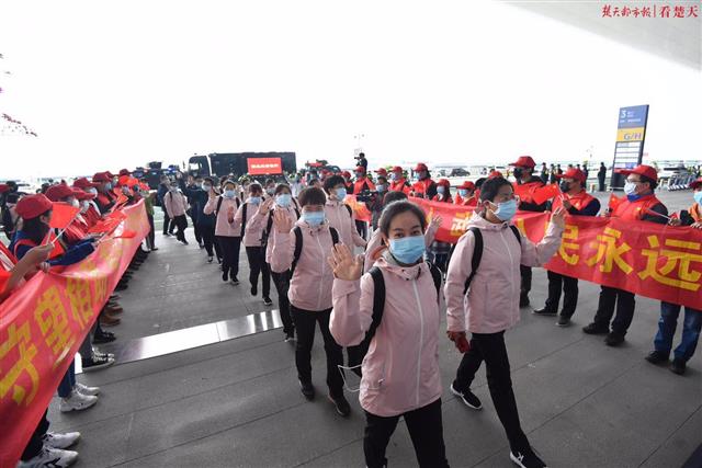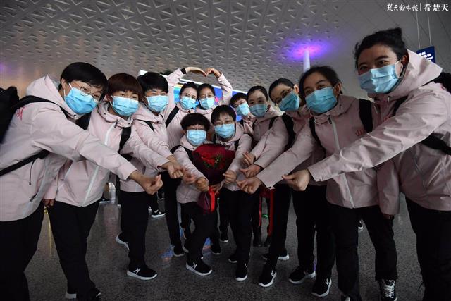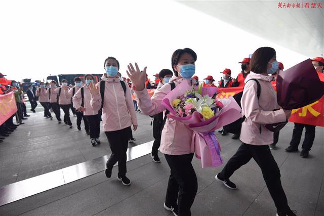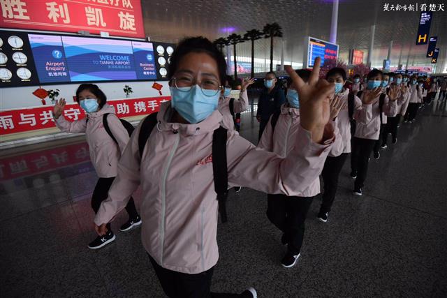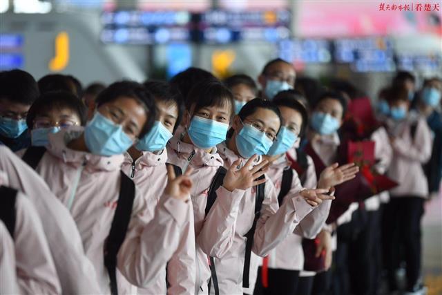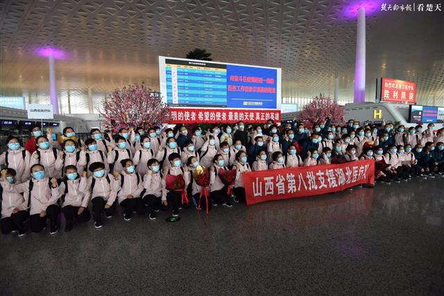 楚天都市报3月19日讯(记者周萍英 余渊 萧颢)来时漫天飘雪,离时春和日丽。山西医疗队第五批、第六批和影像医疗队共计231人的队伍,在武汉天河机场安检口挥手向记者在内的武汉人民告别。