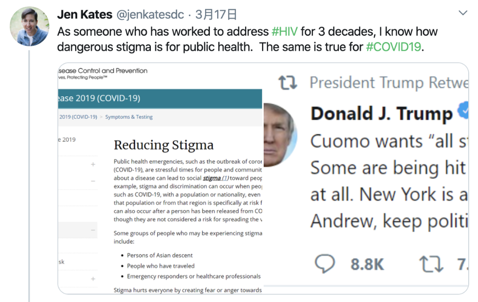 全球卫生与艾滋病政策主任耶恩⋅凯茨则表示:“作为一位在艾滋病领域工作了30年的人,我知道污名化对公共卫生来说是多么的危险。这对新冠病毒来说也是如此。”