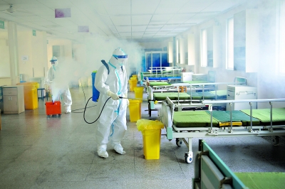 3月19日上午,武汉市第七医院进行环境消杀。从办公区到隔离区域,全范围无死角消毒,为后面恢复正常医疗做准备。