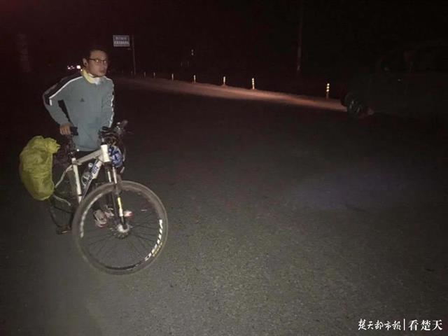 当晚6点半,夜幕降临,孙宇也成功抵达襄阳城区。担心他虚脱了,项目工友早驾车并带上吃的喝的,在城区市郊等他。