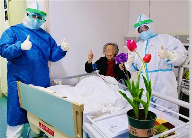 据悉,90岁的周太婆2月初不幸罹患新冠肺炎,转入武汉大学人民医院东院区时已是危重型。通过系统治疗后,她的肺部感染已大部分吸收,较之前明显好转,新冠核酸检测已经双阴,可在床上和床边自由活动,脱氧状态下氧合可以维持在95%左右。此外,周太婆的一对子女也曾感染,在该院区精心治疗下,已痊愈出院。余锂镭预计,再过三五天,周太婆就能出院跟家人团聚了。