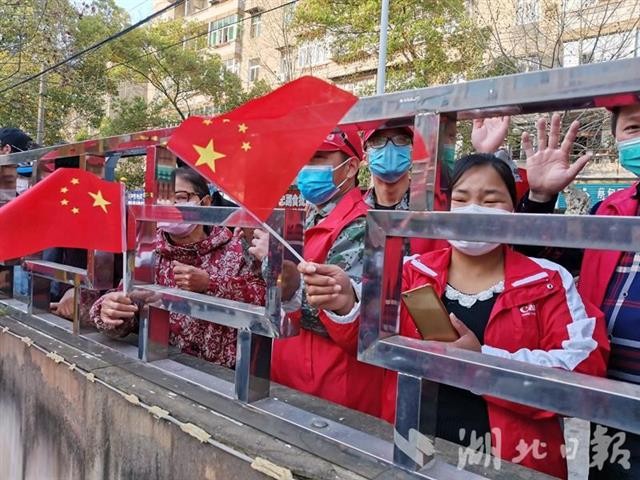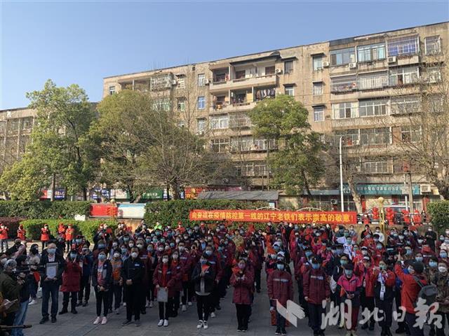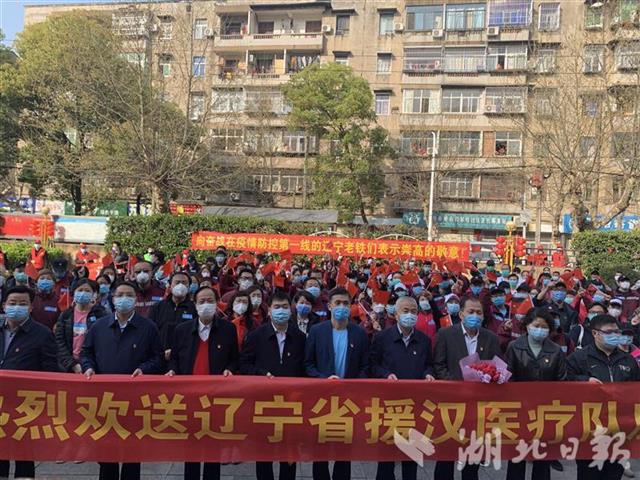 湖北日报讯(记者张卫华)3月20日8时30分,武汉市蔡甸区知音莲花湖酒店,驰援武汉的辽宁首批援鄂医疗队138位医护人员踏上返程。送别现场,志愿者们帮助离汉的医护人员搬运摆放行李,整齐列队敬礼,目送车辆离开,向“最美逆行者”致以崇高敬意。