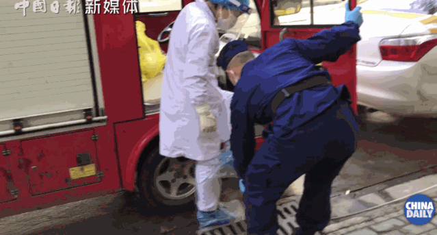 记者刚见到他时,他正开着消防车要去医院给医生和护士发放早餐。