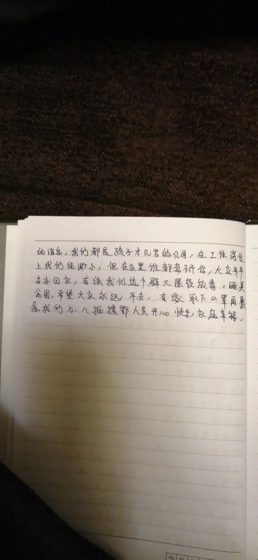家里都想他们了,就像我的孩子想我一样。我二妹最爱给我说的话就是“妈妈你还有几分钟回来,你是在阿坝州,还是在武汉?”老大会说:“妈妈是不是我上幼儿园你就回来了?”每每听到我都觉得他们越来越懂事了,我也开始变老了。快要胜利了,我不想再看到不幸的消息,我们都是孩子才几岁的父母,在工作岗位上我们很渺小,在家里谁都离不开你的,大家平平安安回家,有缘我们这个群又深夜放毒晒美食图,希望大家永远平安,有缘取下口罩再聚。